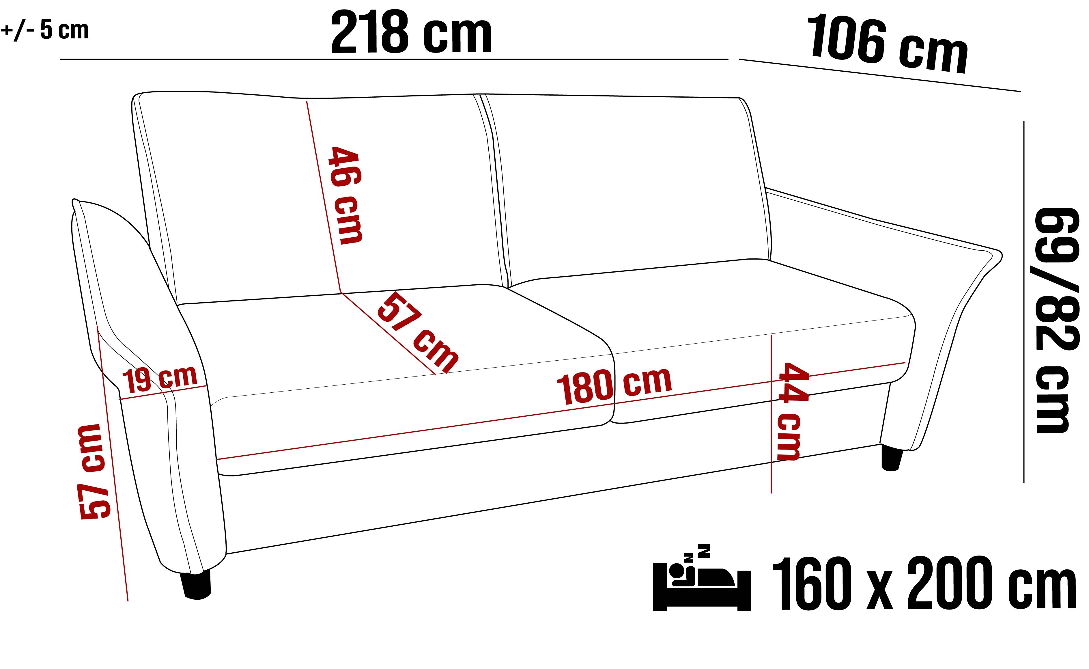 218x106x69/82 cm