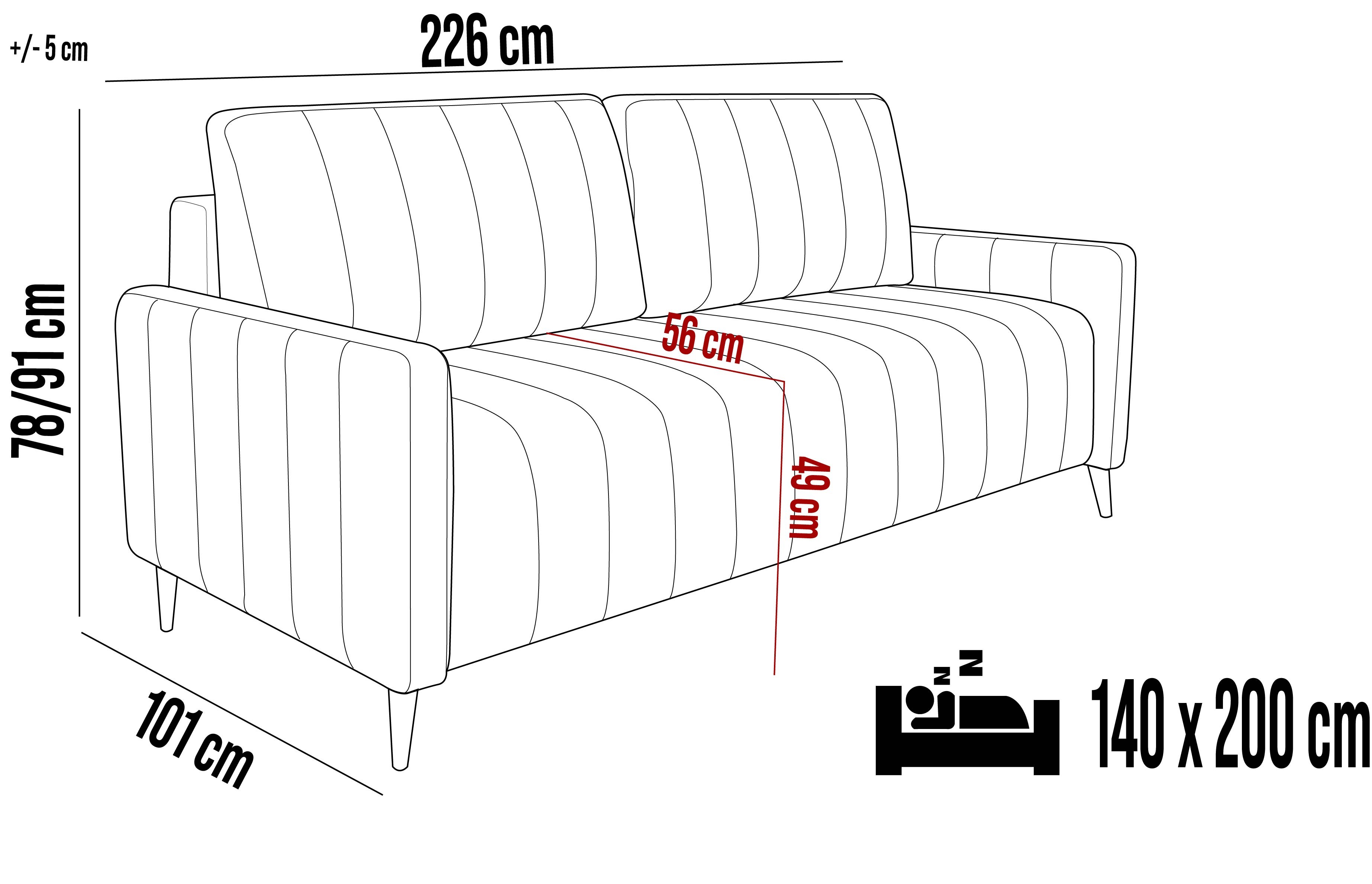 226x101x78/91 cm