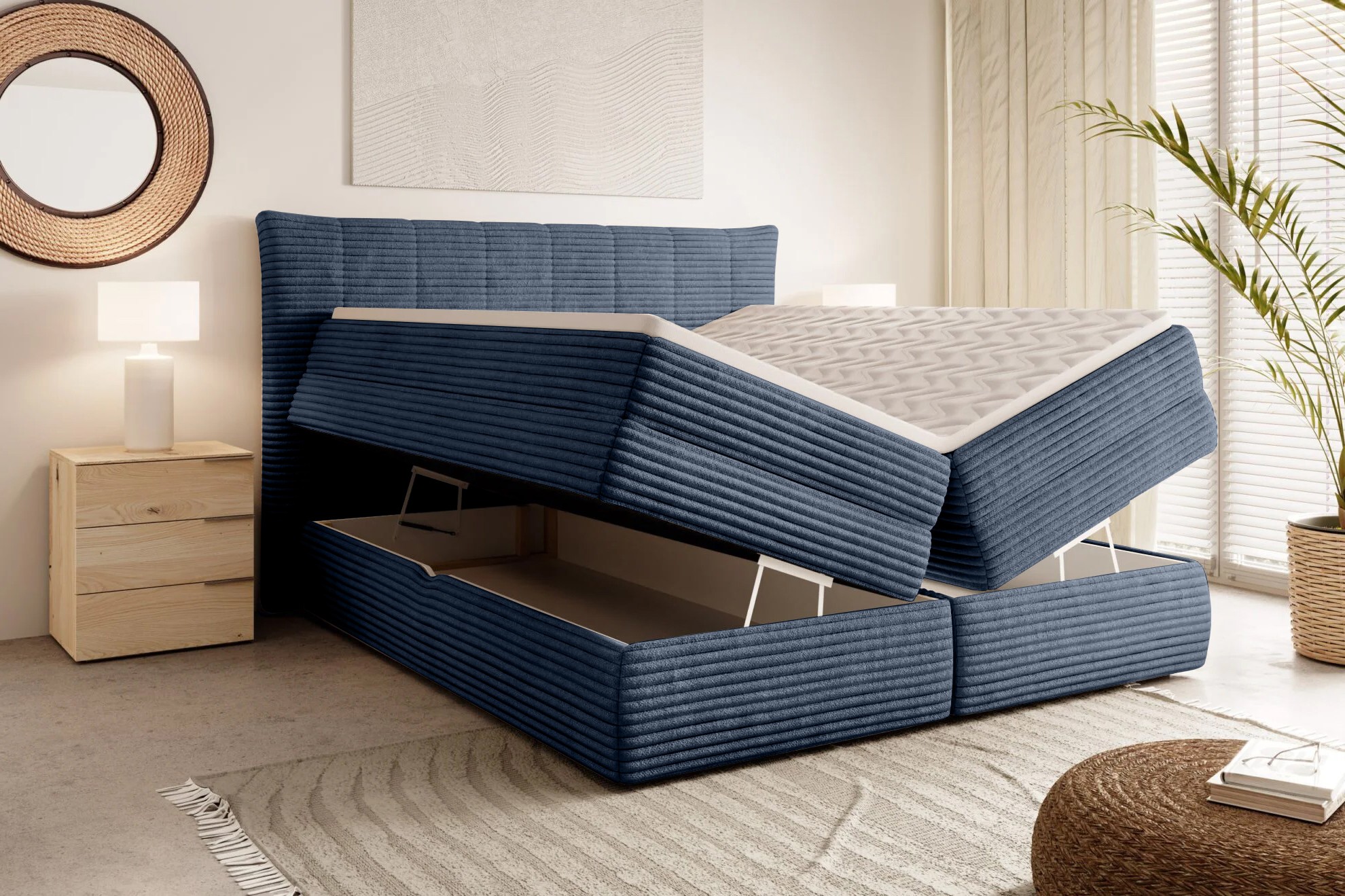 • Duża powierzchnia pojemników na pościel – praktyczne rozwiązanie do sypialni