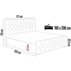 Model wyposażony jest w wysokie, wygodne wezgłowie oraz ozdobny front z przeszyciami w stylu Caro i pikowaniami z kryształkami, które nadają całości elegancki, nowoczesny charakter. Stylowy zagłówek zaprojektowano tak, aby harmonijnie współgrał z bryłą łóżka i pasował do różnych aranżacji sypialni. Tył zagłówka wykończono czarną podbitką – łóżko nie jest wolnostojące.
