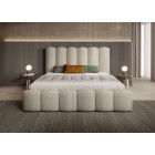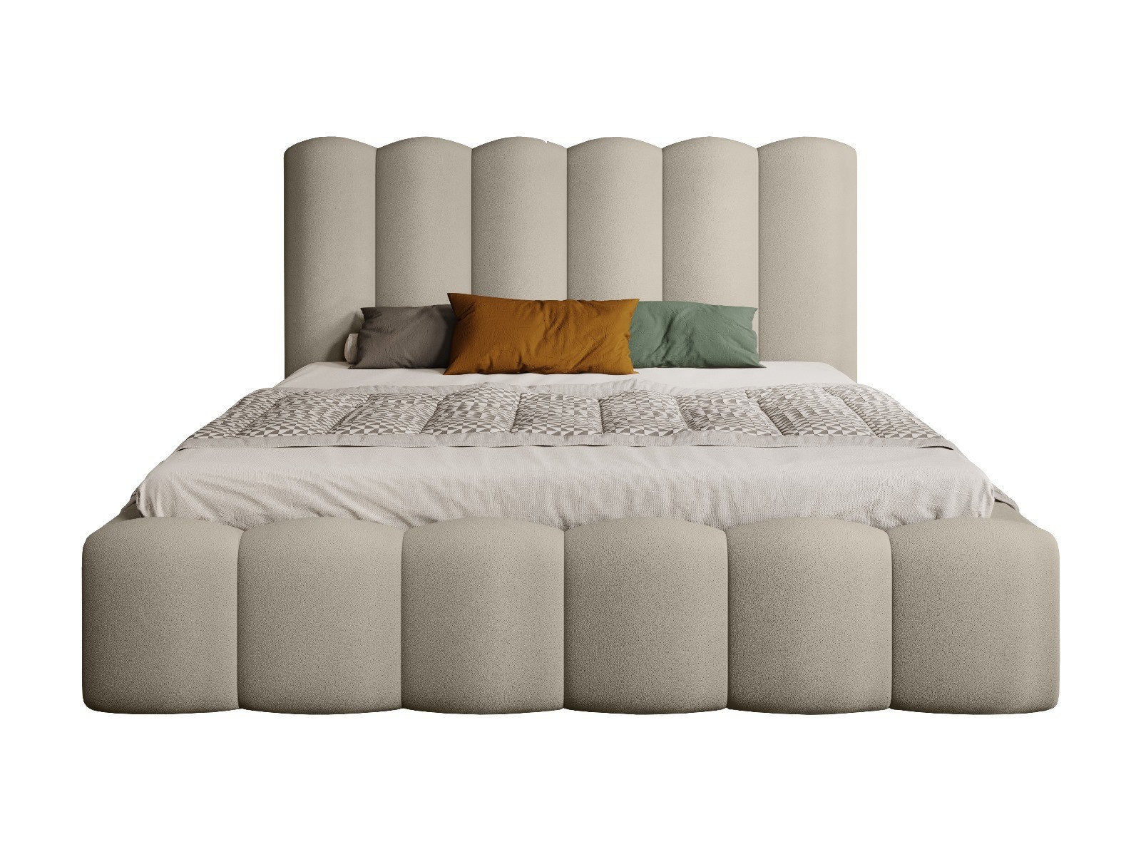 Łóżko tapicerowane Mona V to harmonijne połączenie stylowej estetyki i praktycznych rozwiązań. Wysokie, komfortowe wezgłowie oraz ozdobny front z półwałkami nadają bryle nowoczesny i elegancki charakter, idealnie wpisujący się w różnorodne aranżacje sypialni.