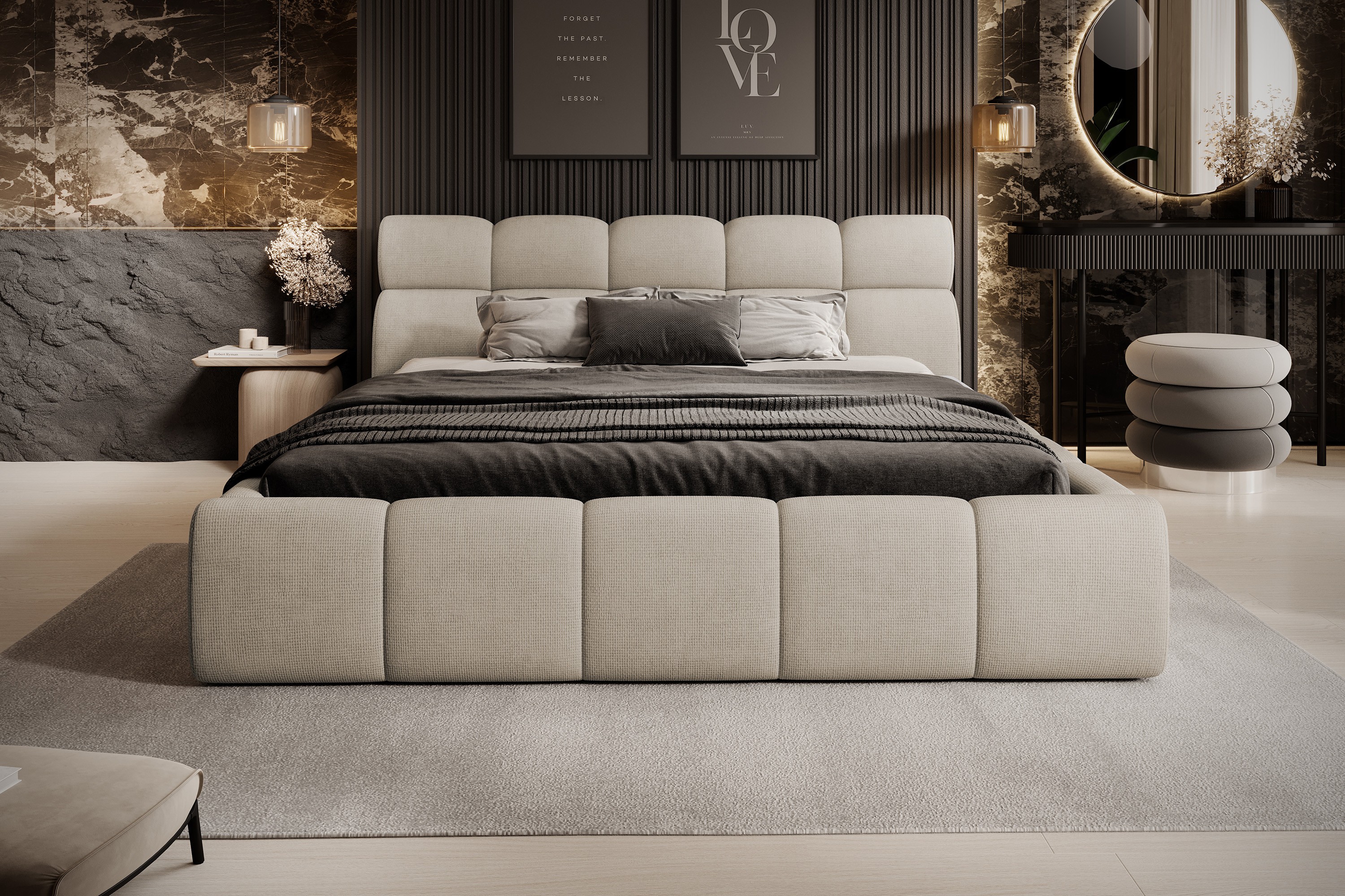 Łóżko GIULIA tapicerowane z pojemnikiem na pościel kolor Beżowy WERSAL