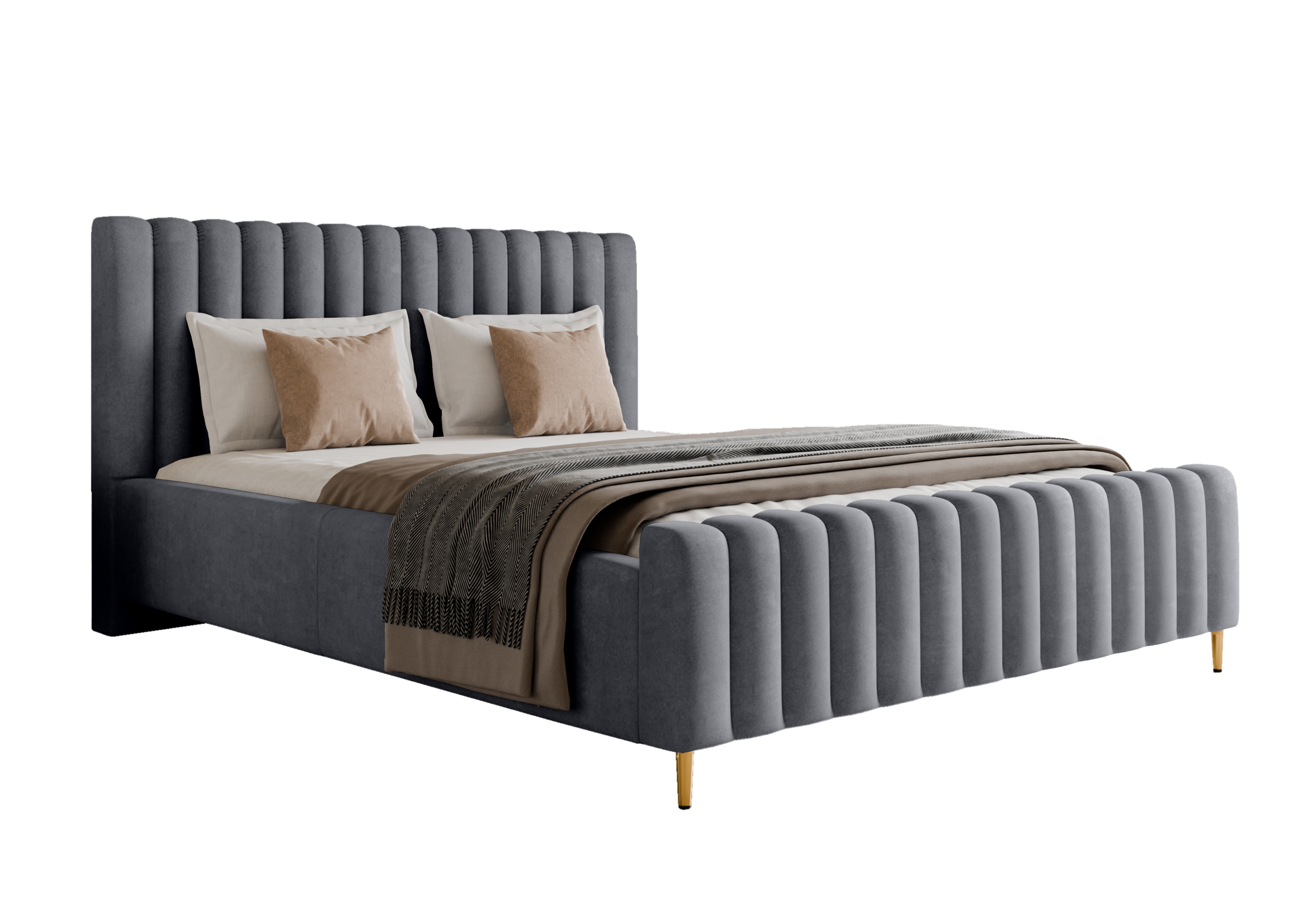 Łóżko LUX tapicerowane z pojemnikiem i zagłówkiem w tkaninie AMON 11 kolor SZARY DOMOHOME