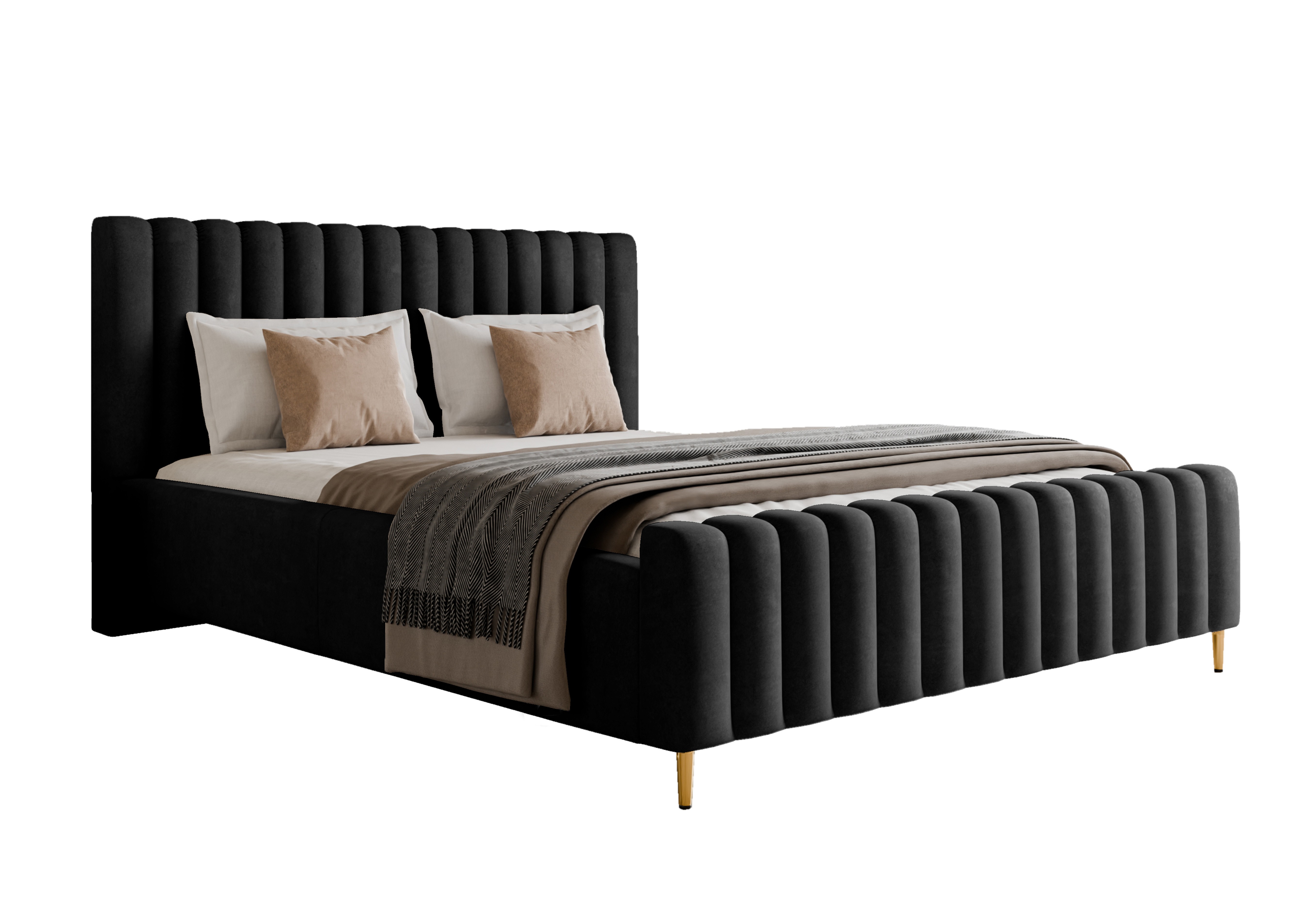 Łóżko LUX tapicerowane z pojemnikiem i zagłówkiem w tkaninie AMON 13 kolor CZARNY DOMOHOME