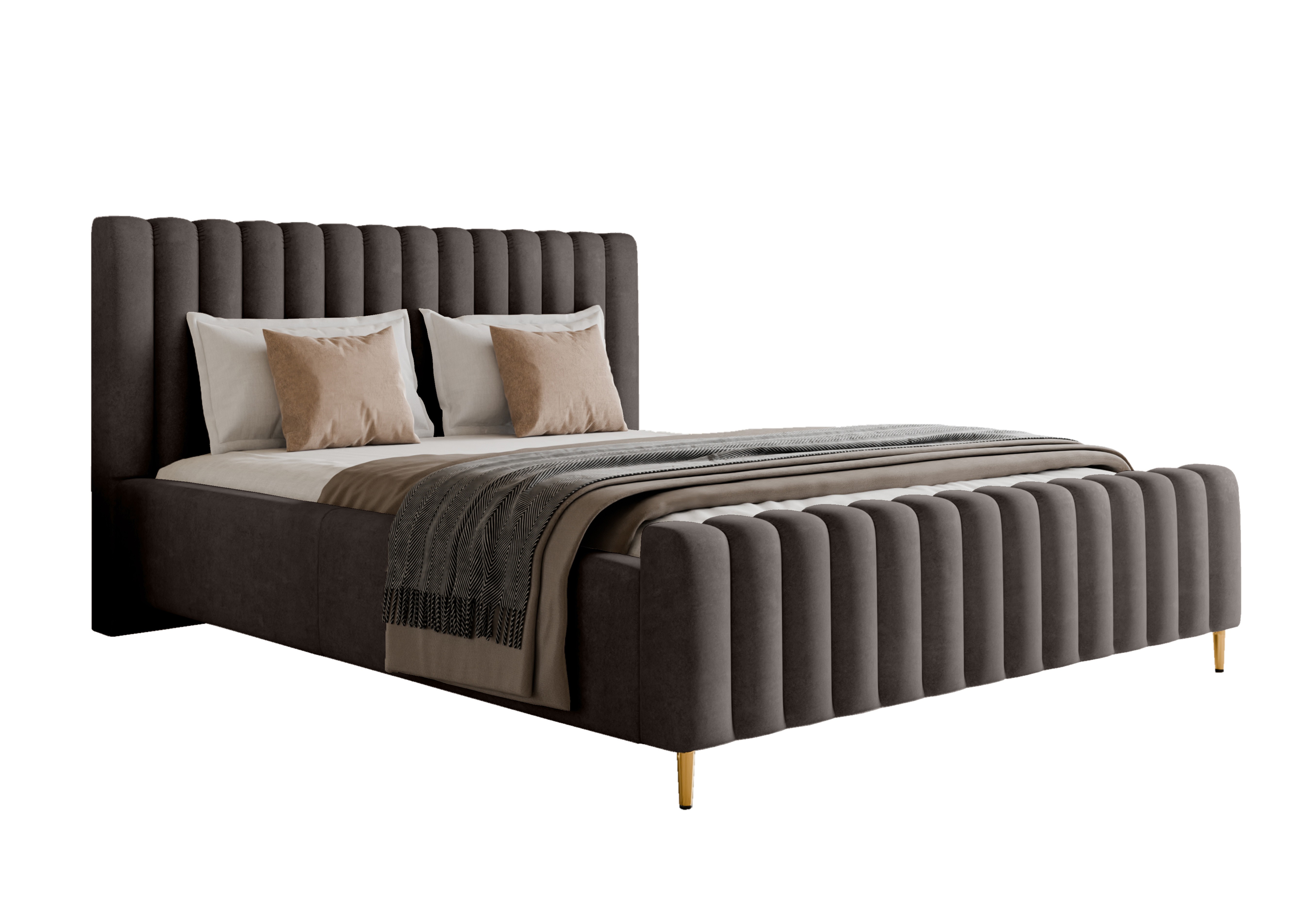 Łóżko LUX tapicerowane z pojemnikiem i zagłówkiem w tkaninie AMON 15 kolor BRĄZOWY DOMOHOME