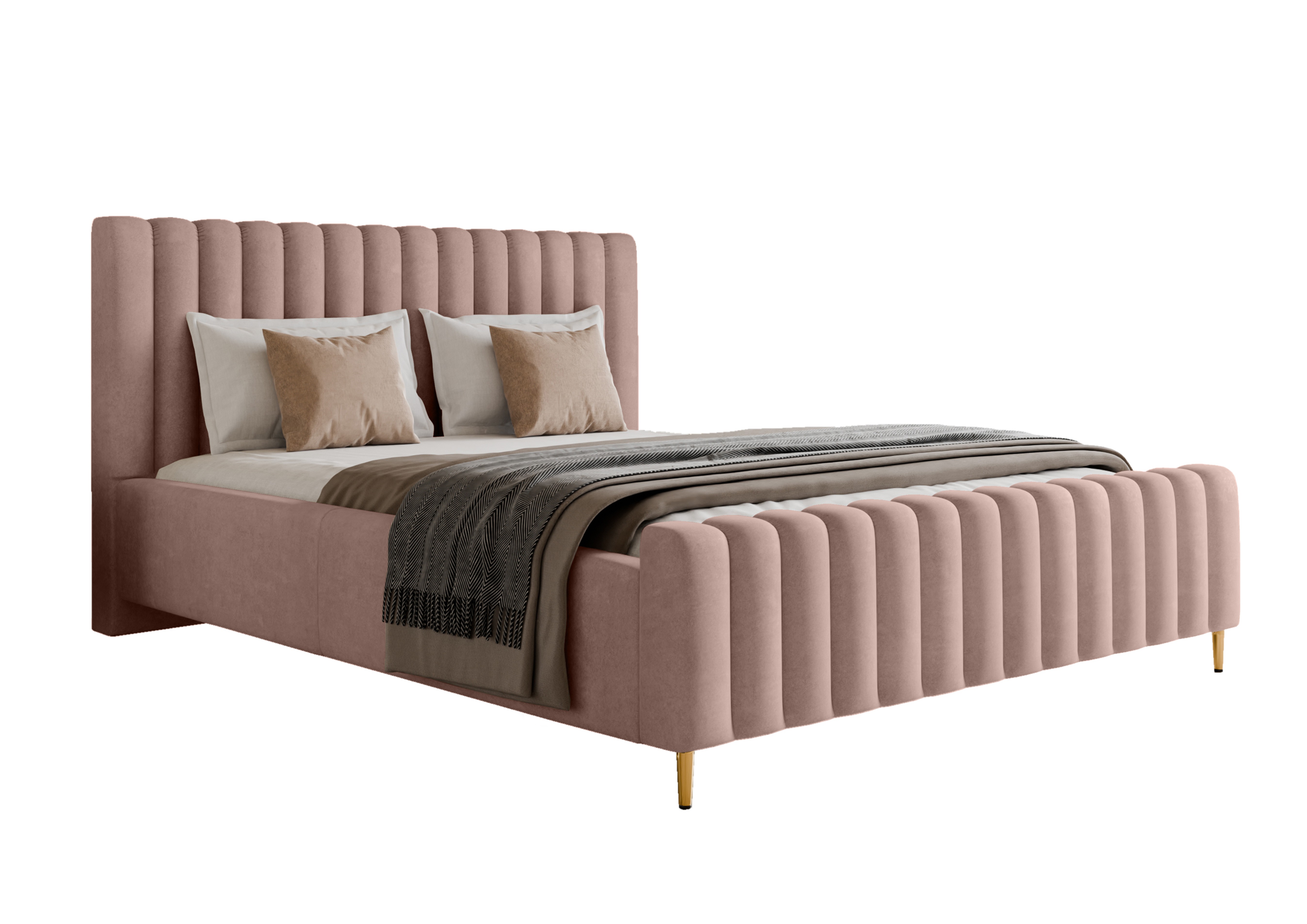 Łóżko LUX tapicerowane z pojemnikiem i zagłówkiem w tkaninie AMON 21 kolor PUDROWY RÓŻ DOMOHOME