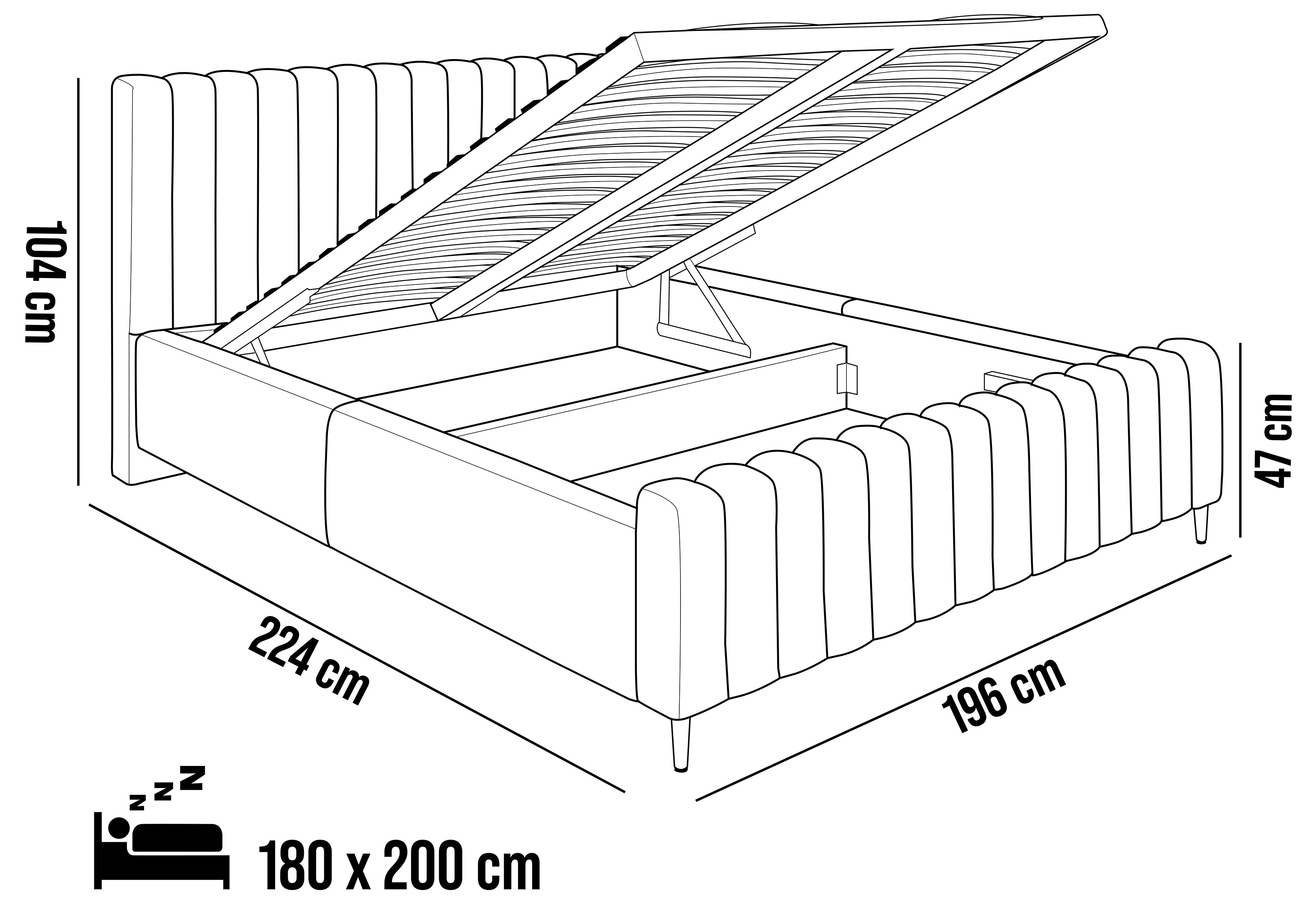 • Powierzchnia spania: 180x200 cm