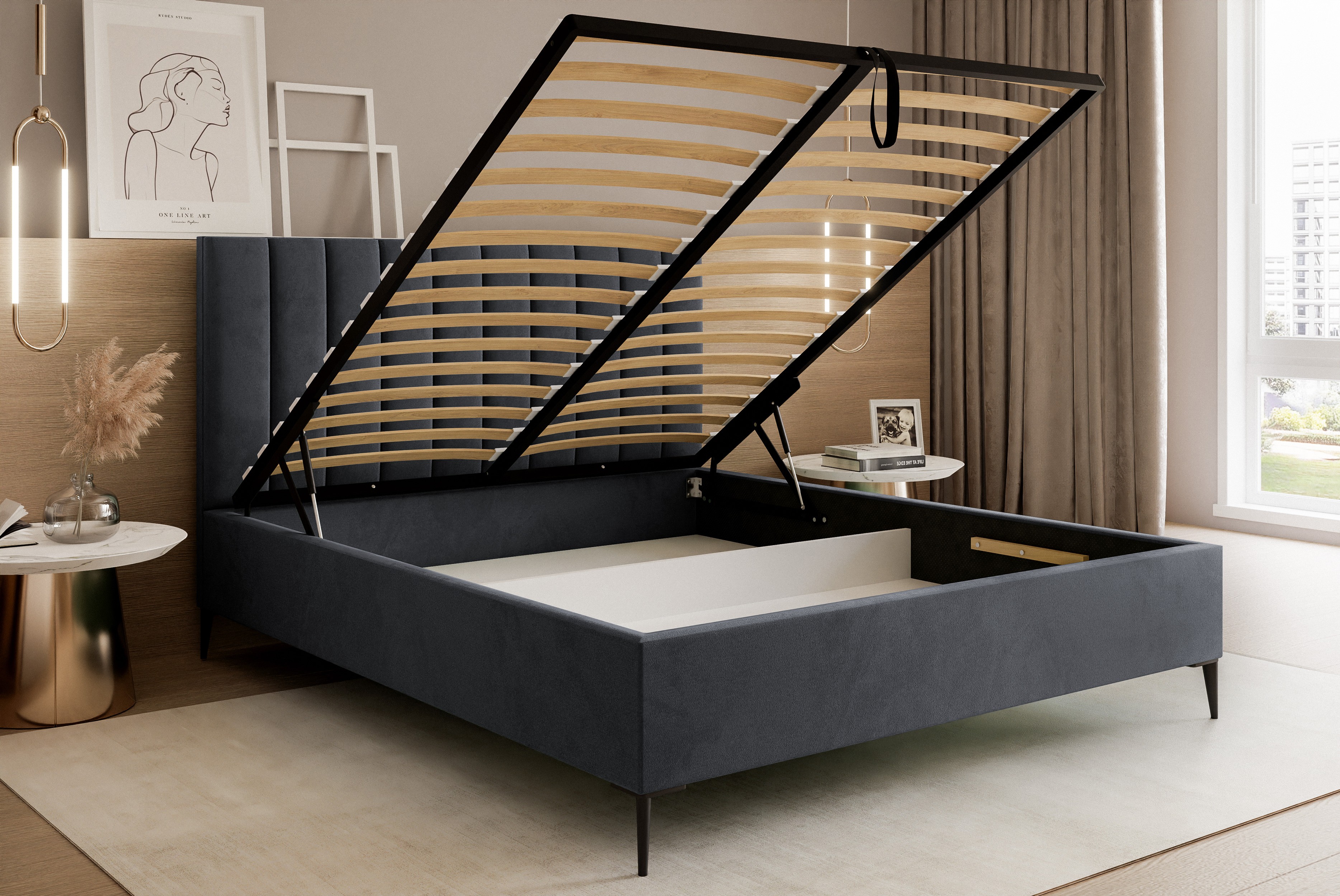 • Dwukomorowy pojemnik pod całym łóżkiem – więcej miejsca do przechowywania