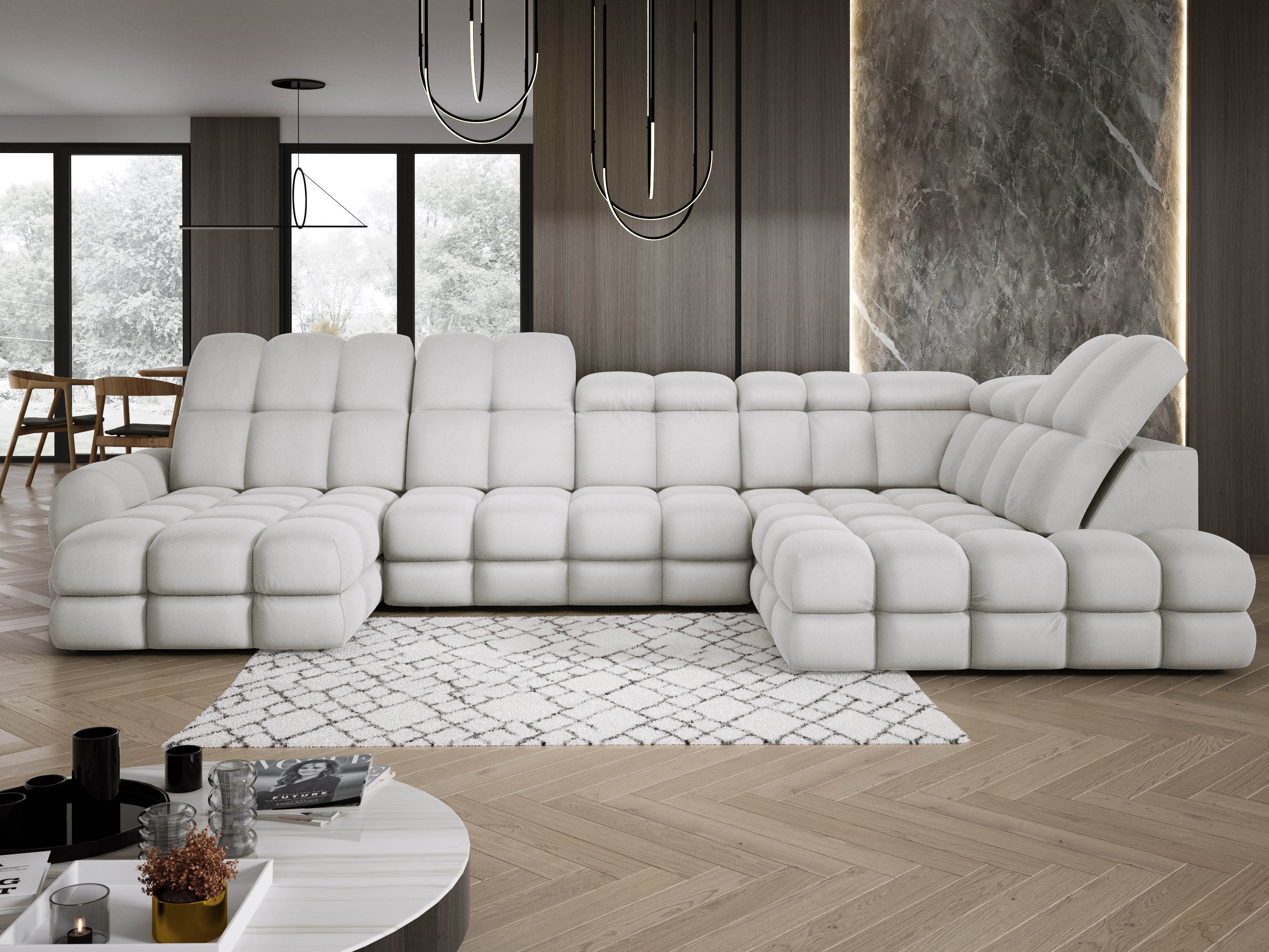 Doskonale komponuje się z obłymi kształtami nowoczesnych mebli, nadając im wyjątkowy charakter. Jej faktura jest niezwykle sprężysta i obfitująca w miękkość.