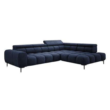 Stylowe pikowane siedzisko i wysokie metalowe nóżki (dostępne w kolorze czarnym lub złotym) nadają narożnikowi lekko loftowy, a jednocześnie nowoczesny charakter.