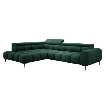Stylowe pikowane siedzisko i wysokie metalowe nóżki (dostępne w kolorze czarnym lub złotym) nadają narożnikowi lekko loftowy, a jednocześnie nowoczesny charakter.