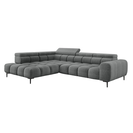 Stylowe pikowane siedzisko i wysokie metalowe nóżki (dostępne w kolorze czarnym lub złotym) nadają narożnikowi lekko loftowy, a jednocześnie nowoczesny charakter.