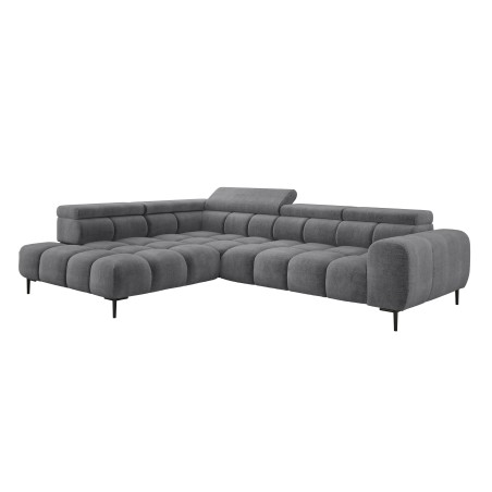 Stylowe pikowane siedzisko i wysokie metalowe nóżki (dostępne w kolorze czarnym lub złotym) nadają narożnikowi lekko loftowy, a jednocześnie nowoczesny charakter.