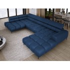 Dodatkowo narożnik wyposażony jest w przesuwne oparcie oraz 6 regulowanych zagłówków z możliwością blokady w dowolnej pozycji. Stylowe pikowane siedzisko i wysokie metalowe nóżki (dostępne w kolorze czarnym lub złotym) nadają całości elegancki, loftowy charakter.
