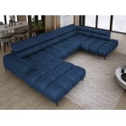 Dodatkowo narożnik wyposażony jest w przesuwne oparcie oraz 6 regulowanych zagłówków z możliwością blokady w dowolnej pozycji. Stylowe pikowane siedzisko i wysokie metalowe nóżki (dostępne w kolorze czarnym lub złotym) nadają całości elegancki, loftowy charakter.