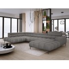 Dodatkowo narożnik wyposażony jest w przesuwne oparcie oraz 6 regulowanych zagłówków z możliwością blokady w dowolnej pozycji. Stylowe pikowane siedzisko i wysokie metalowe nóżki (dostępne w kolorze czarnym lub złotym) nadają całości elegancki, loftowy charakter.