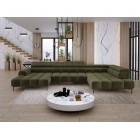Dodatkowo narożnik wyposażony jest w przesuwne oparcie oraz 6 regulowanych zagłówków z możliwością blokady w dowolnej pozycji. Stylowe pikowane siedzisko i wysokie metalowe nóżki (dostępne w kolorze czarnym lub złotym) nadają całości elegancki, loftowy charakter.