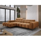 Pikowane siedzisko nadaje narożnikowi nowoczesnego charakteru, a wysokie metalowe nóżki (czarne lub złote) w stylu loftowym dodają mu lekkości i elegancji.