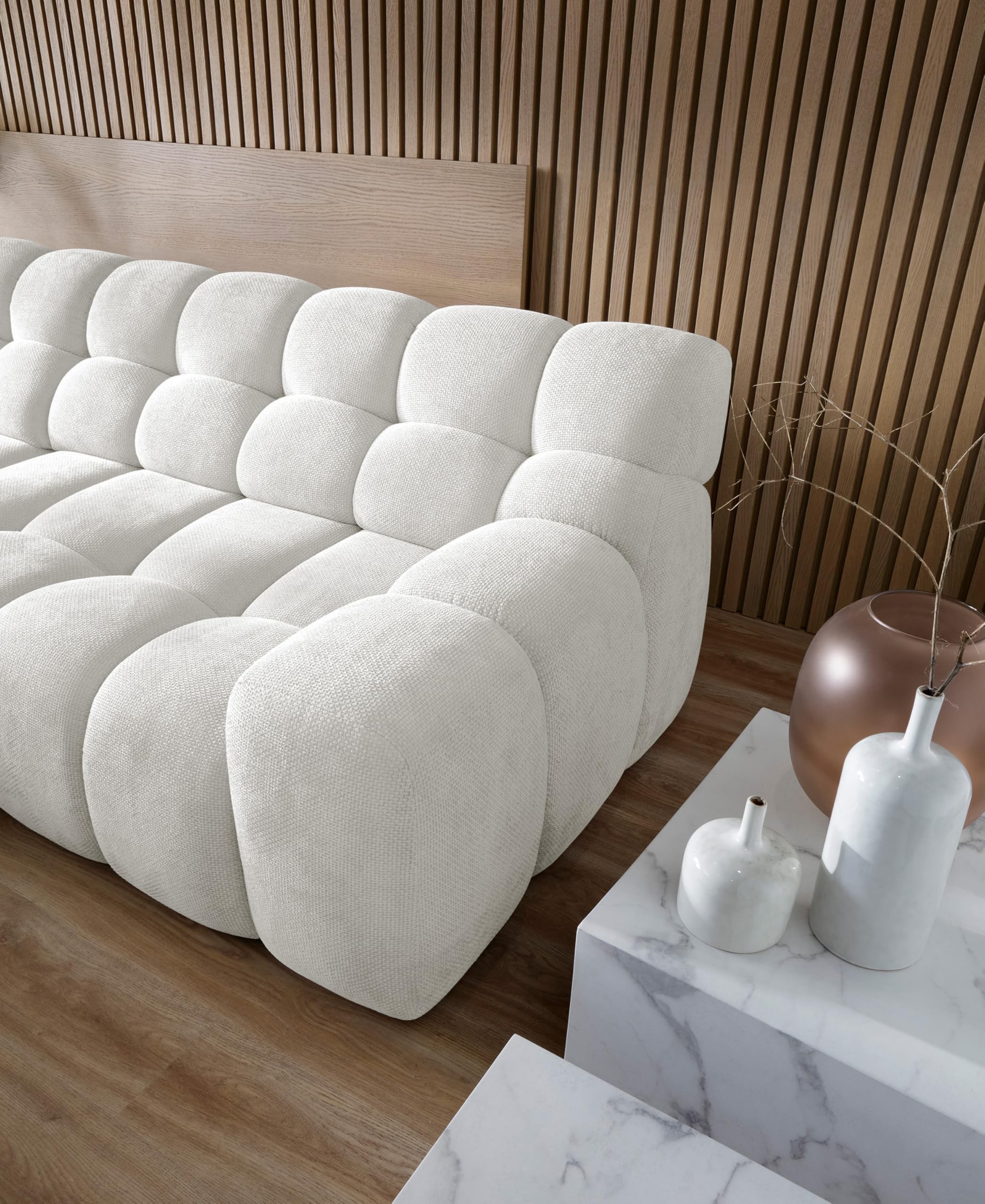 Narożnik CAMPILE to połączenie nowoczesnego wzornictwa i zaawansowanej funkcjonalności, które zaspokoi oczekiwania nawet najbardziej wymagających użytkowników. Zaprojektowany z myślą o wygodzie codziennego użytkowania, CAMPILE przyciąga uwagę subtelnymi pikowaniami i elegancką linią, które doskonale wpisują się w nowoczesne wnętrza.