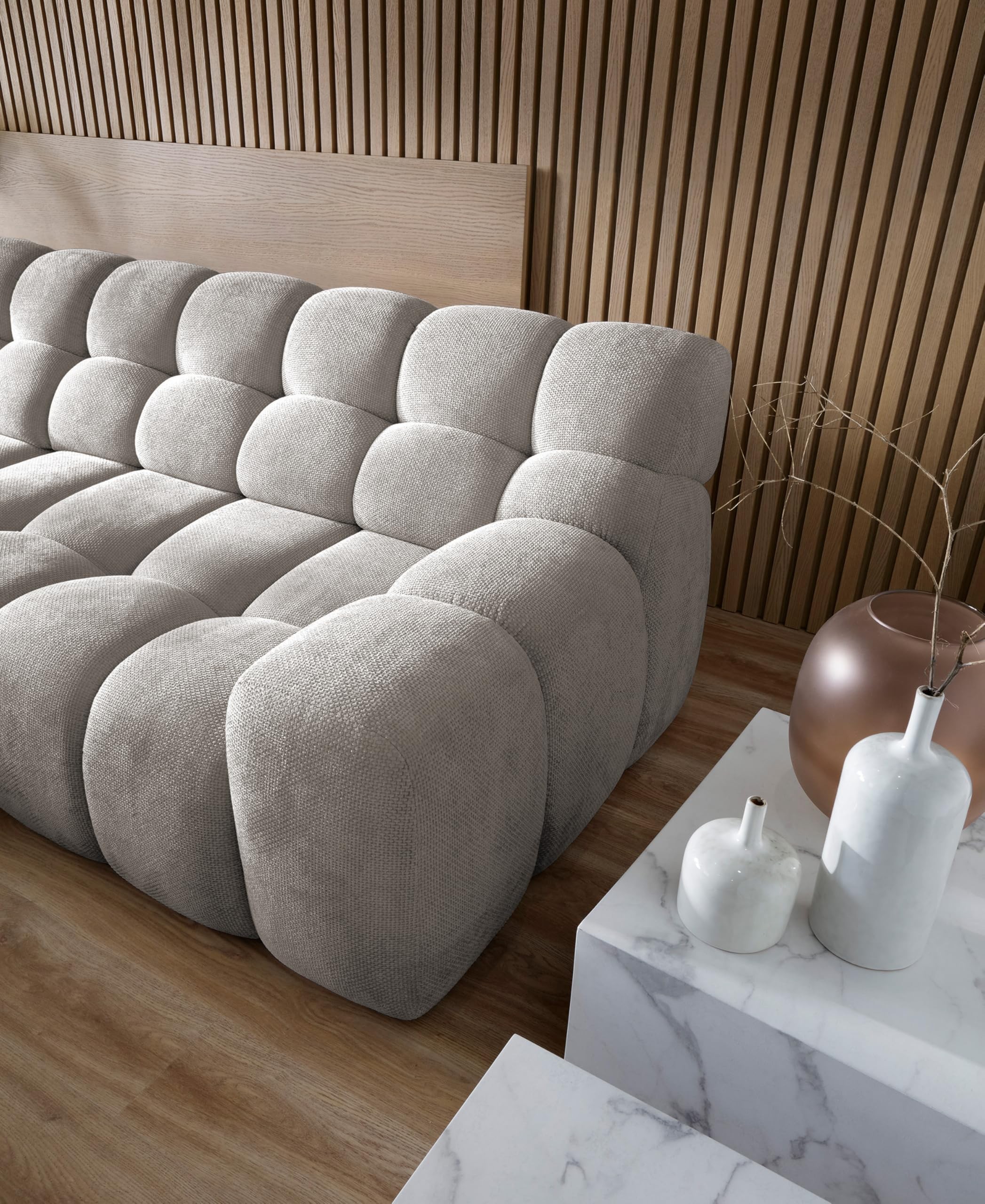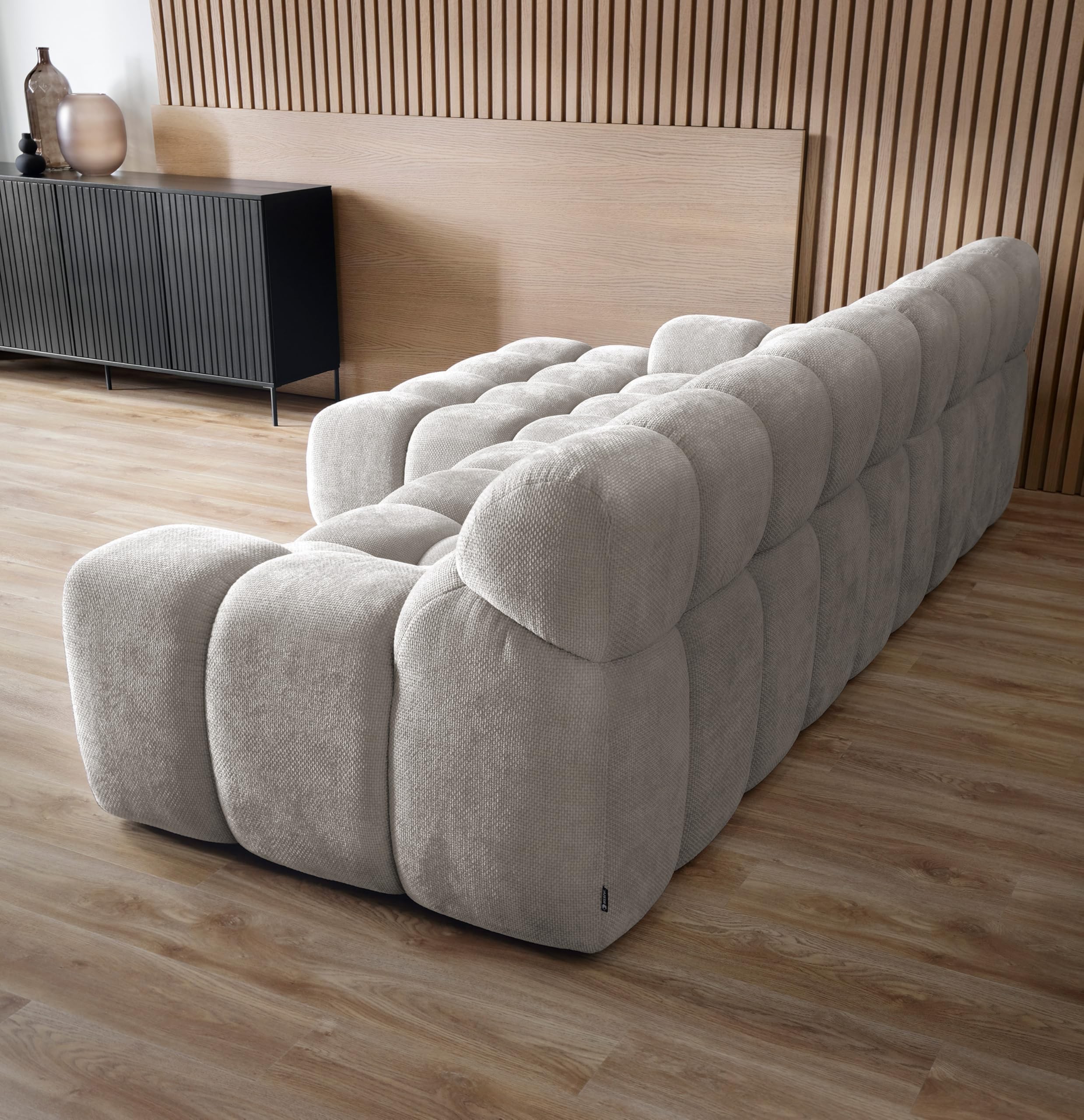 Narożnik CAMPILE to połączenie nowoczesnego wzornictwa i zaawansowanej funkcjonalności, które zaspokoi oczekiwania nawet najbardziej wymagających użytkowników. Zaprojektowany z myślą o wygodzie codziennego użytkowania, CAMPILE przyciąga uwagę subtelnymi pikowaniami i elegancką linią, które doskonale wpisują się w nowoczesne wnętrza.