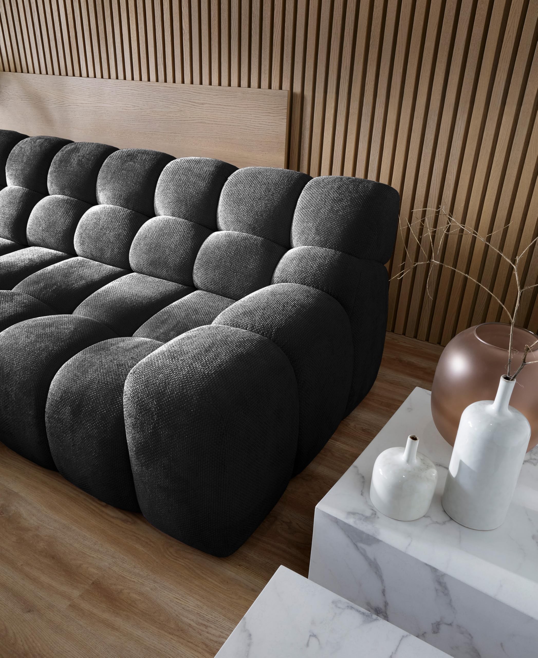 Narożnik CAMPILE to połączenie nowoczesnego wzornictwa i zaawansowanej funkcjonalności, które zaspokoi oczekiwania nawet najbardziej wymagających użytkowników. Zaprojektowany z myślą o wygodzie codziennego użytkowania, CAMPILE przyciąga uwagę subtelnymi pikowaniami i elegancką linią, które doskonale wpisują się w nowoczesne wnętrza.