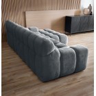 Największym atutem tego modelu jest elektrycznie wysuwane siedzisko, które pozwala w łatwy sposób zwiększyć głębokość mebla, zapewniając jeszcze więcej miejsca do relaksu. Zastosowanie sprężyn falistych w połączeniu z pianką wysoko elastyczną gwarantuje znakomity komfort siedzenia oraz trwałość na lata.