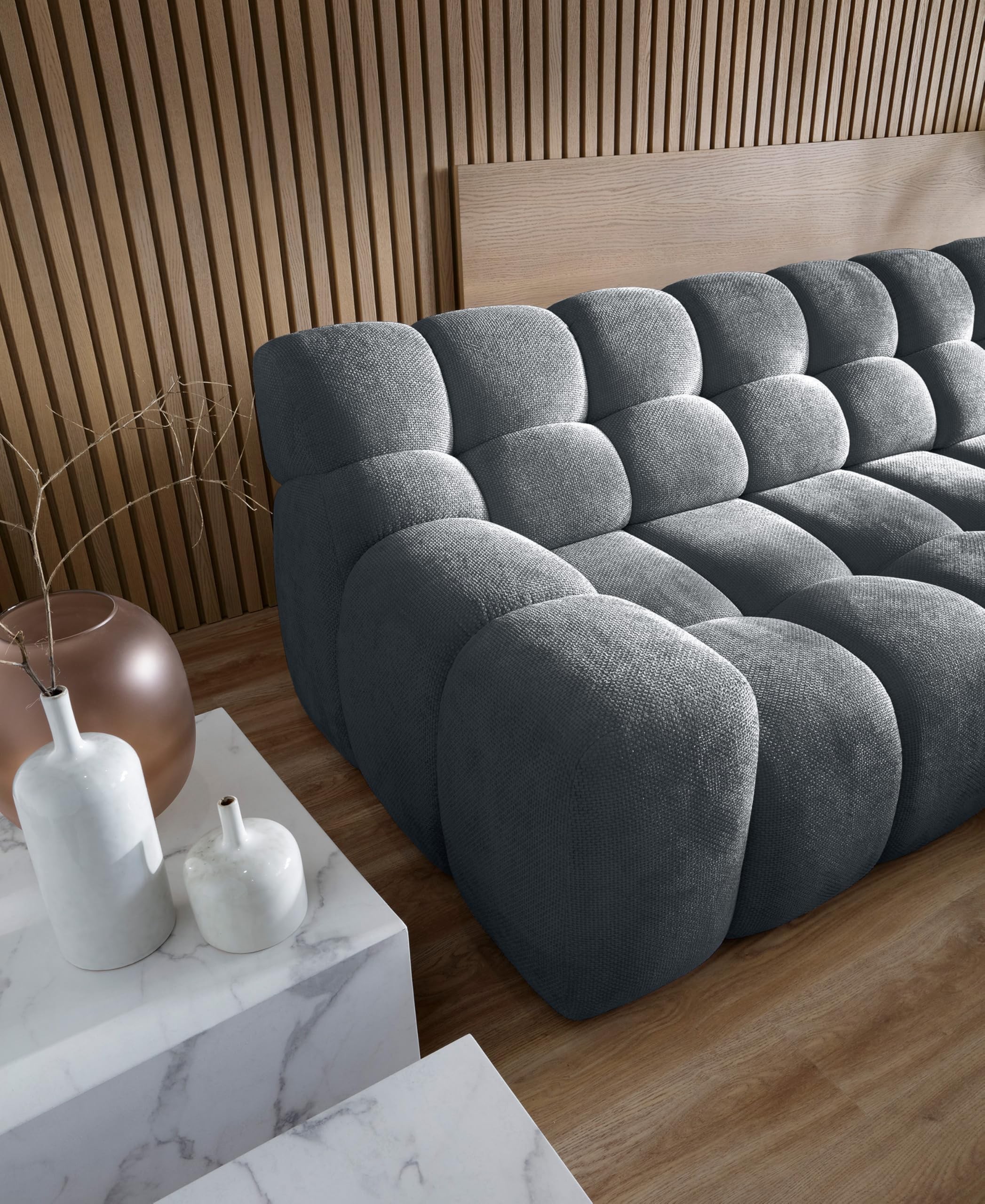 Narożnik CAMPILE to połączenie nowoczesnego wzornictwa i zaawansowanej funkcjonalności, które zaspokoi oczekiwania nawet najbardziej wymagających użytkowników. Zaprojektowany z myślą o wygodzie codziennego użytkowania, CAMPILE przyciąga uwagę subtelnymi pikowaniami i elegancką linią, które doskonale wpisują się w nowoczesne wnętrza.