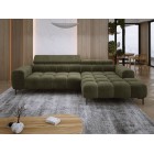 Pikowane siedzisko nadaje narożnikowi nowoczesnego charakteru, a wysokie metalowe nóżki (czarne lub złote) w stylu loftowym dodają mu lekkości i elegancji.