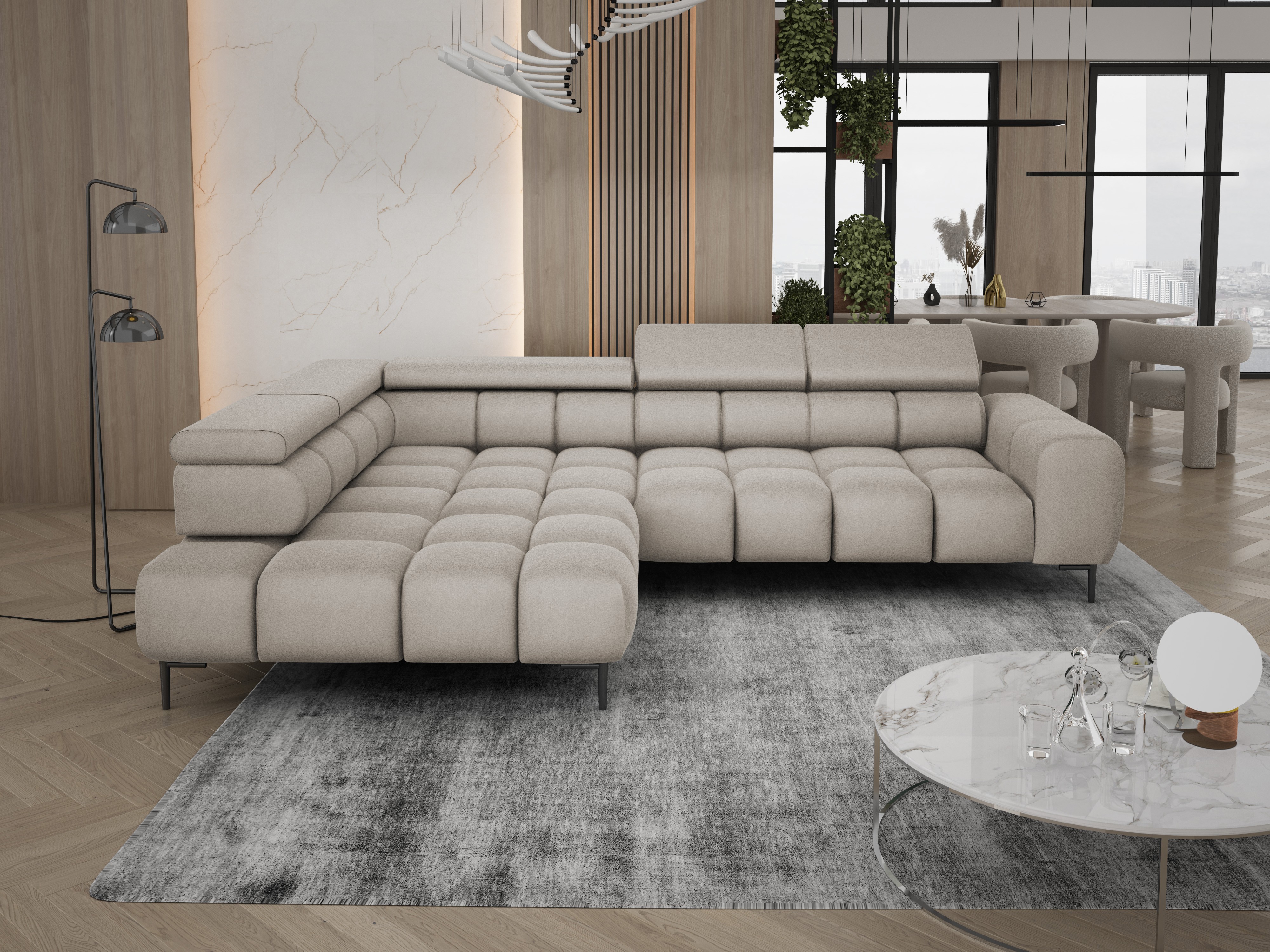 Narożnik PLAZA L to nowoczesny, elegancki mebel, który zachwyca funkcjonalnością i wysokim komfortem użytkowania.