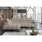 Stylowe pikowane siedzisko i wysokie metalowe nóżki (dostępne w kolorze czarnym lub złotym) nadają narożnikowi lekko loftowy, a jednocześnie nowoczesny charakter.