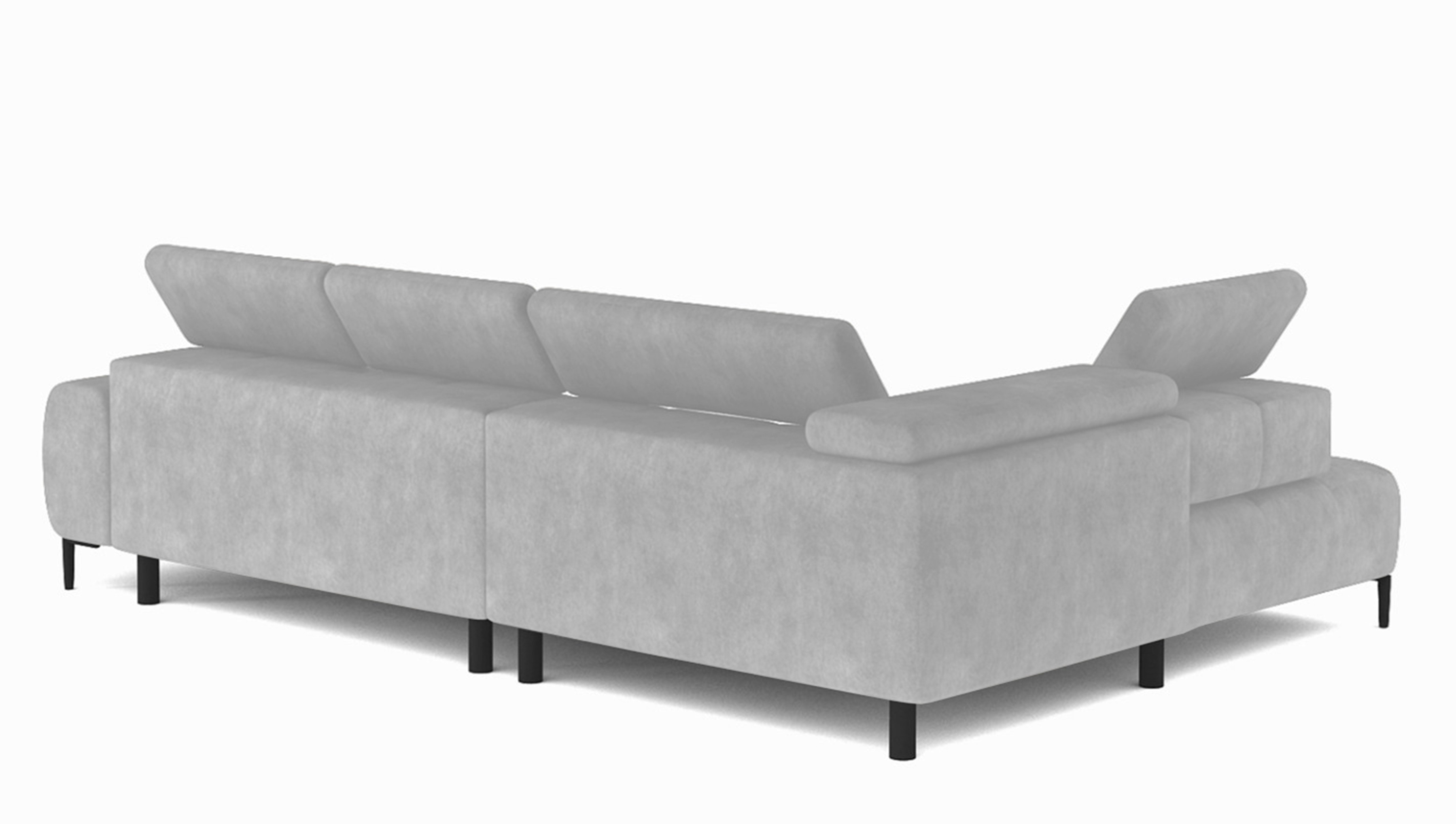 Dodatkowo narożnik wyposażony jest w przesuwne oparcie oraz regulowane zagłówki (5 sztuk), które można zablokować w wybranej pozycji, zapewniając jeszcze większy komfort.