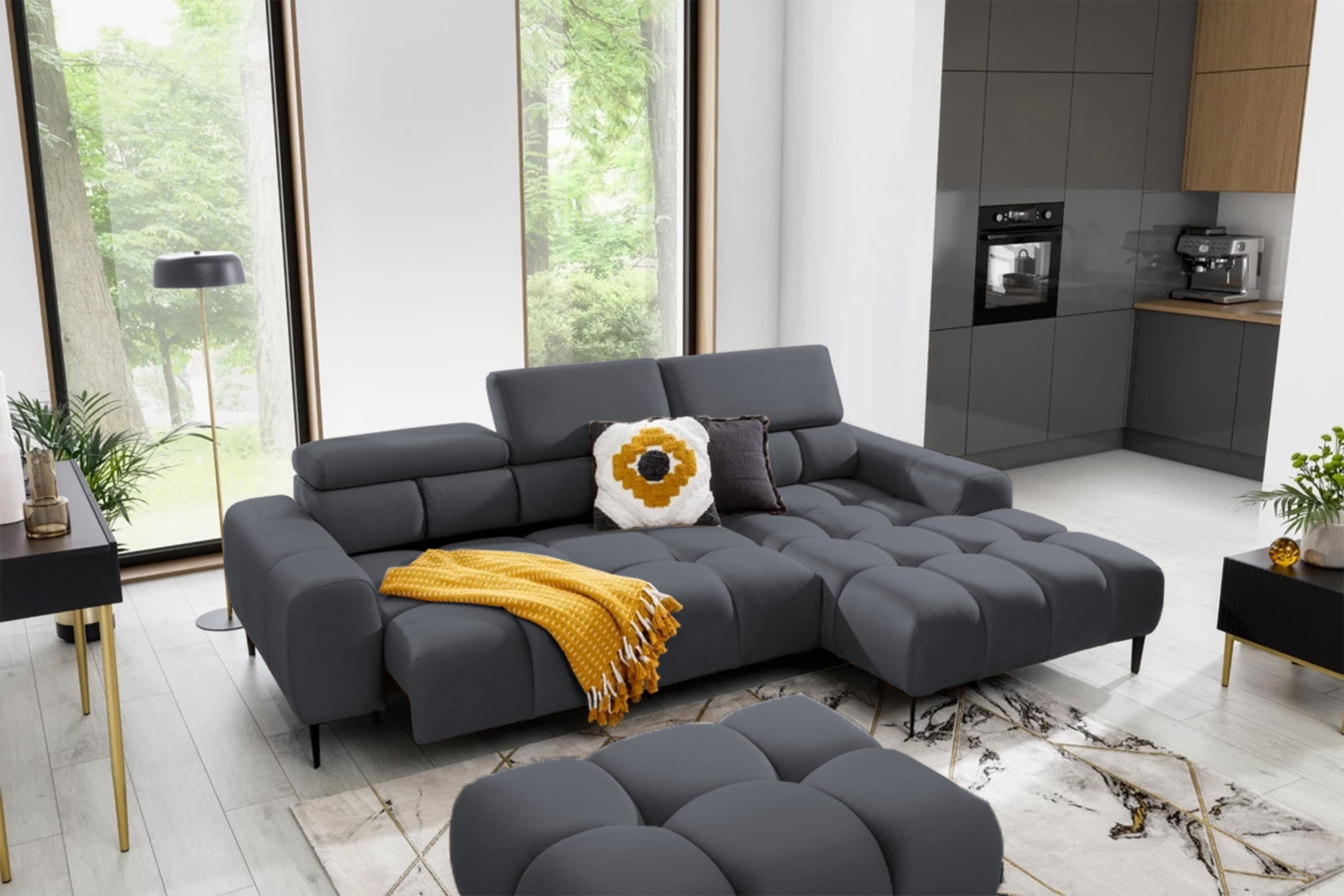 Narożnik PLAZA MINI to połączenie elegancji, nowoczesnych rozwiązań i funkcjonalności, które spełnią oczekiwania nawet najbardziej wymagających użytkowników.