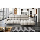 Pikowane siedzisko nadaje narożnikowi nowoczesnego charakteru, a wysokie metalowe nóżki (czarne lub złote) w stylu loftowym dodają mu lekkości i elegancji.