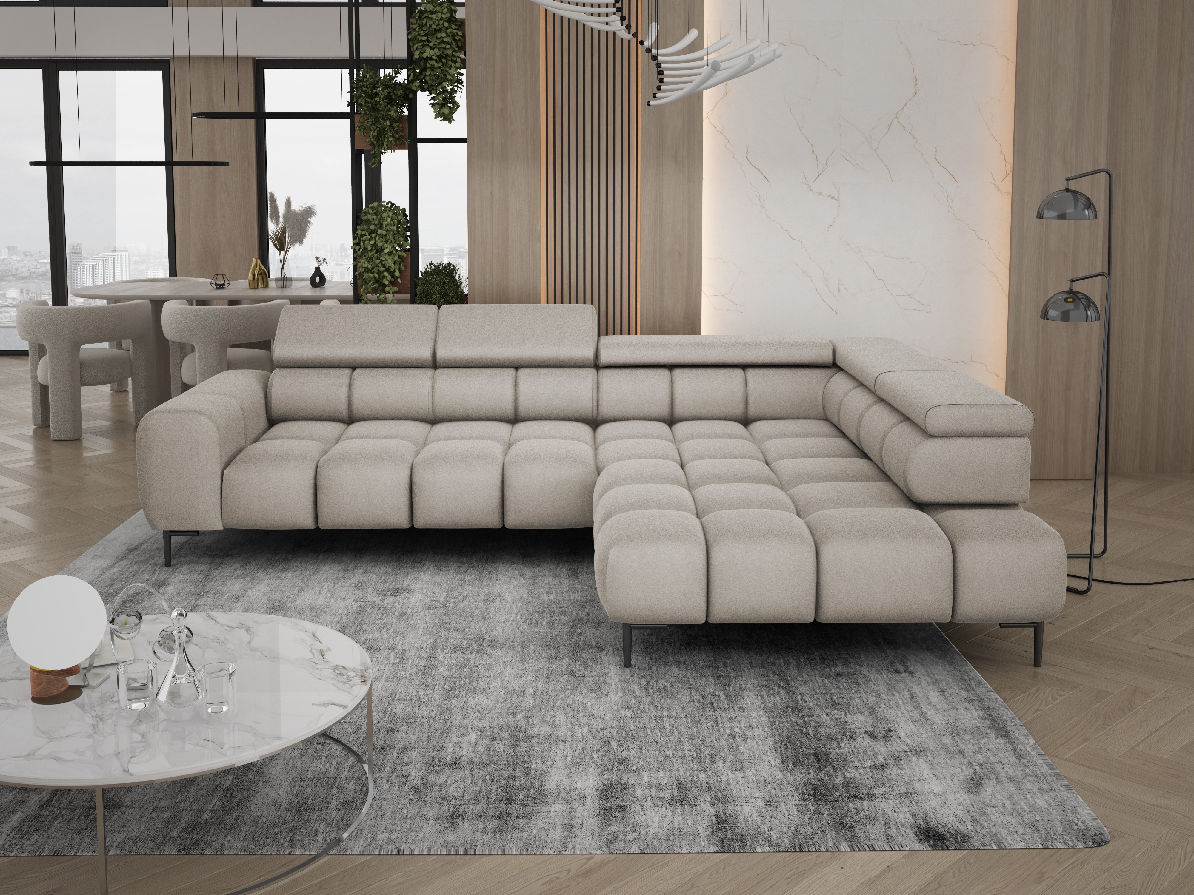 Narożnik PLAZA L to nowoczesny, elegancki mebel, który zachwyca funkcjonalnością i wysokim komfortem użytkowania.