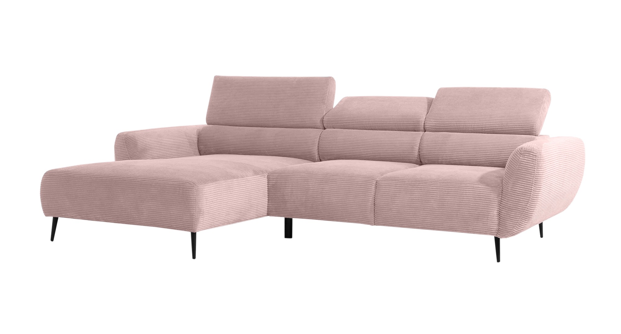 Gładkie siedzisko nadaje narożnikowi nowoczesnego charakteru, a wysokie metalowe nóżki w stylu loftowym dodają mu lekkości i elegancji.
