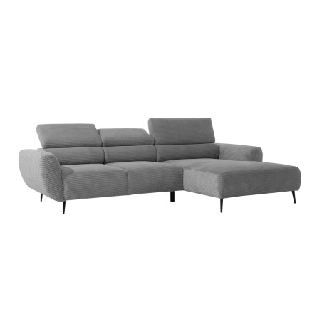 Gładkie siedzisko nadaje narożnikowi nowoczesnego charakteru, a wysokie metalowe nóżki w stylu loftowym dodają mu lekkości i elegancji.