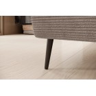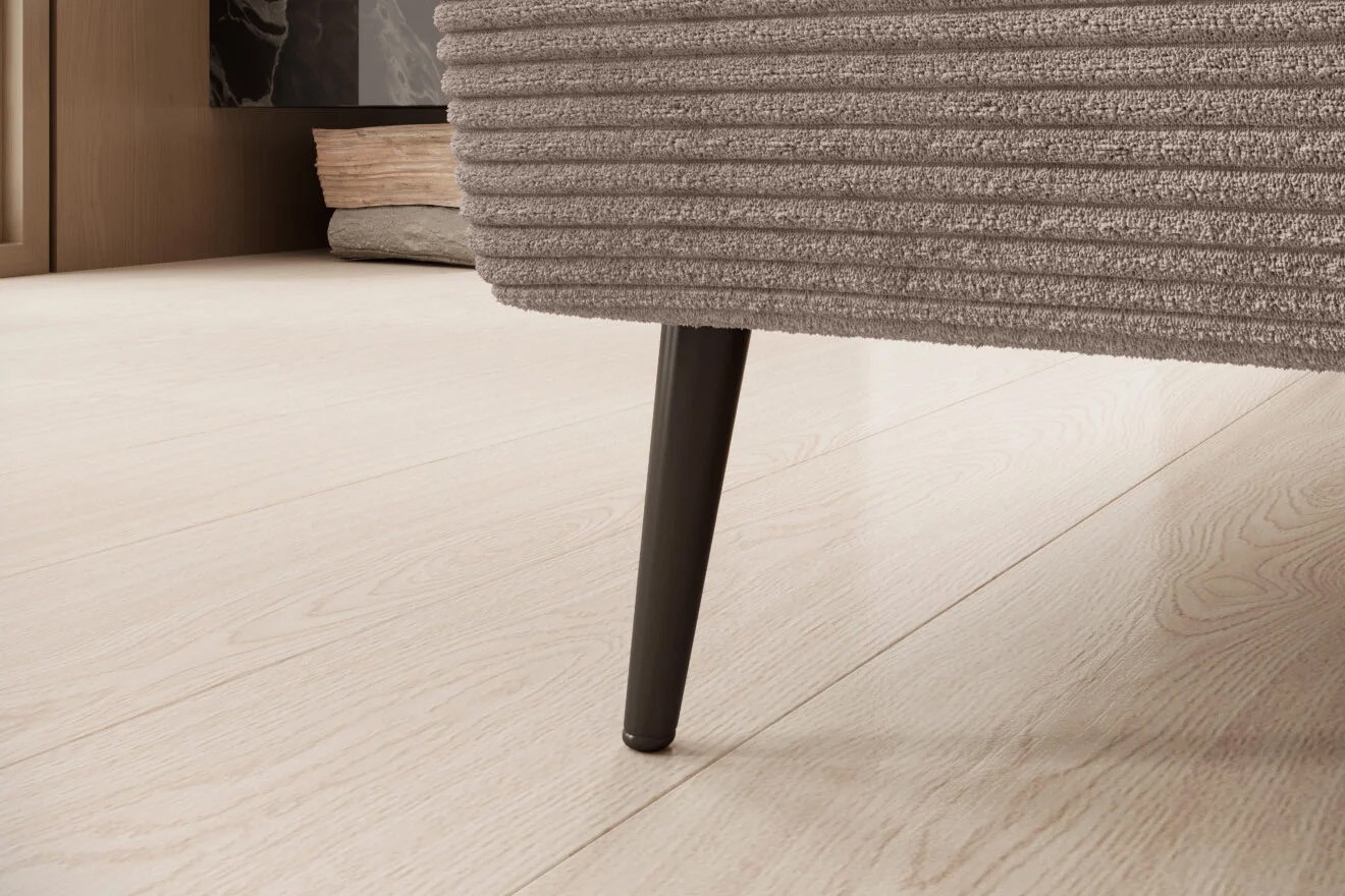 Gładkie siedzisko nadaje narożnikowi nowoczesnego charakteru, a wysokie metalowe nóżki w stylu loftowym dodają mu lekkości i elegancji.