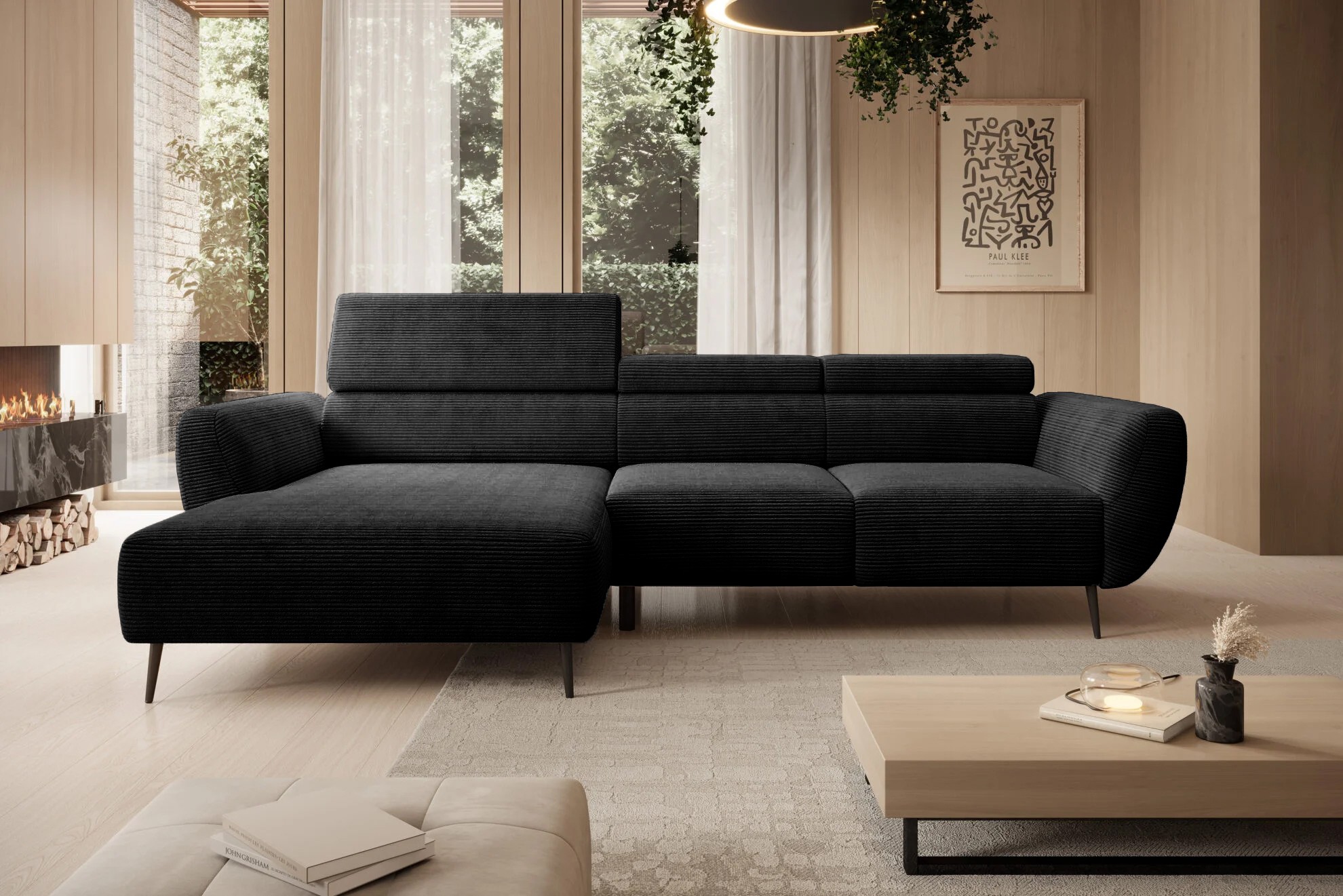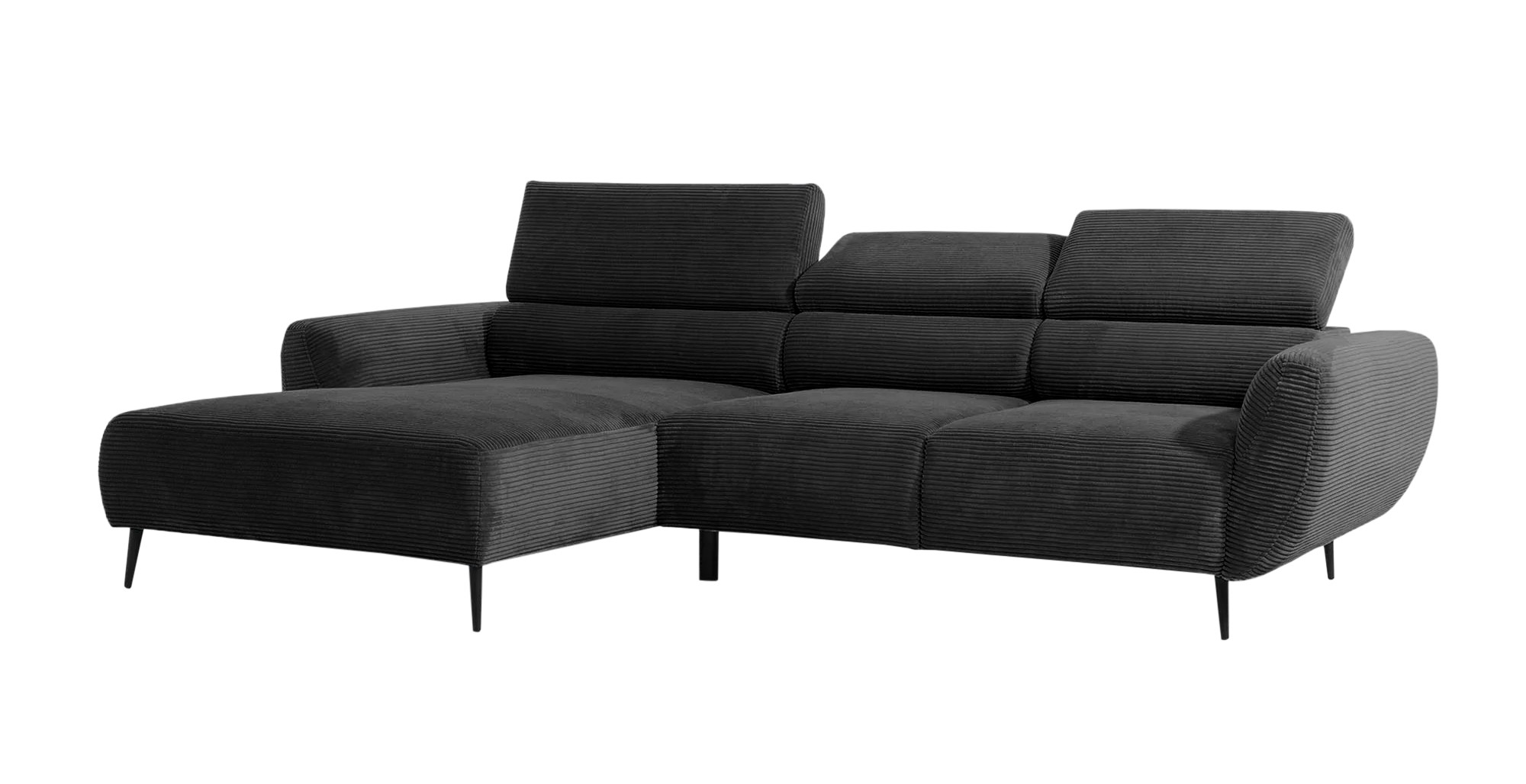Gładkie siedzisko nadaje narożnikowi nowoczesnego charakteru, a wysokie metalowe nóżki w stylu loftowym dodają mu lekkości i elegancji.