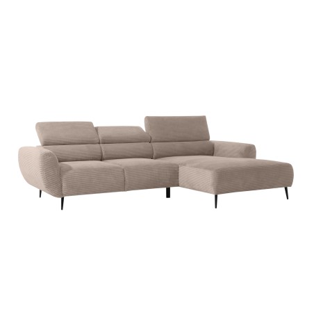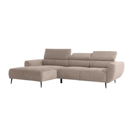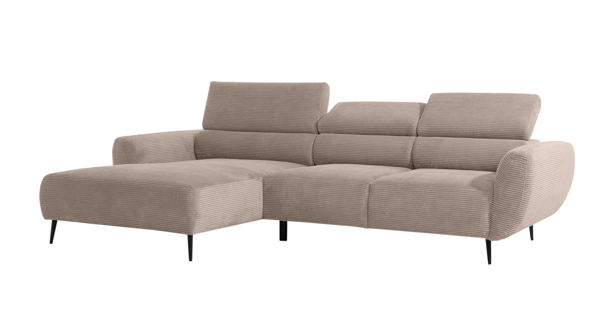 Gładkie siedzisko nadaje narożnikowi nowoczesnego charakteru, a wysokie metalowe nóżki w stylu loftowym dodają mu lekkości i elegancji.