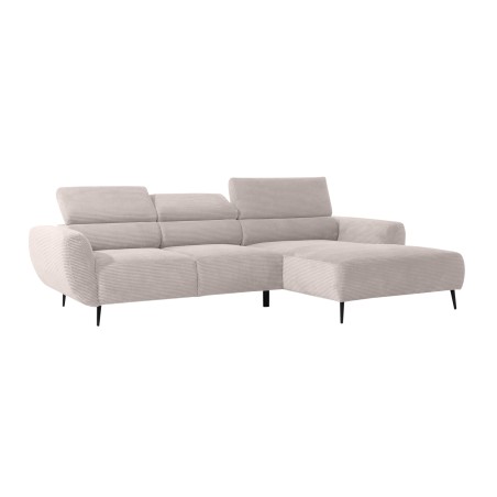 Gładkie siedzisko nadaje narożnikowi nowoczesnego charakteru, a wysokie metalowe nóżki w stylu loftowym dodają mu lekkości i elegancji.