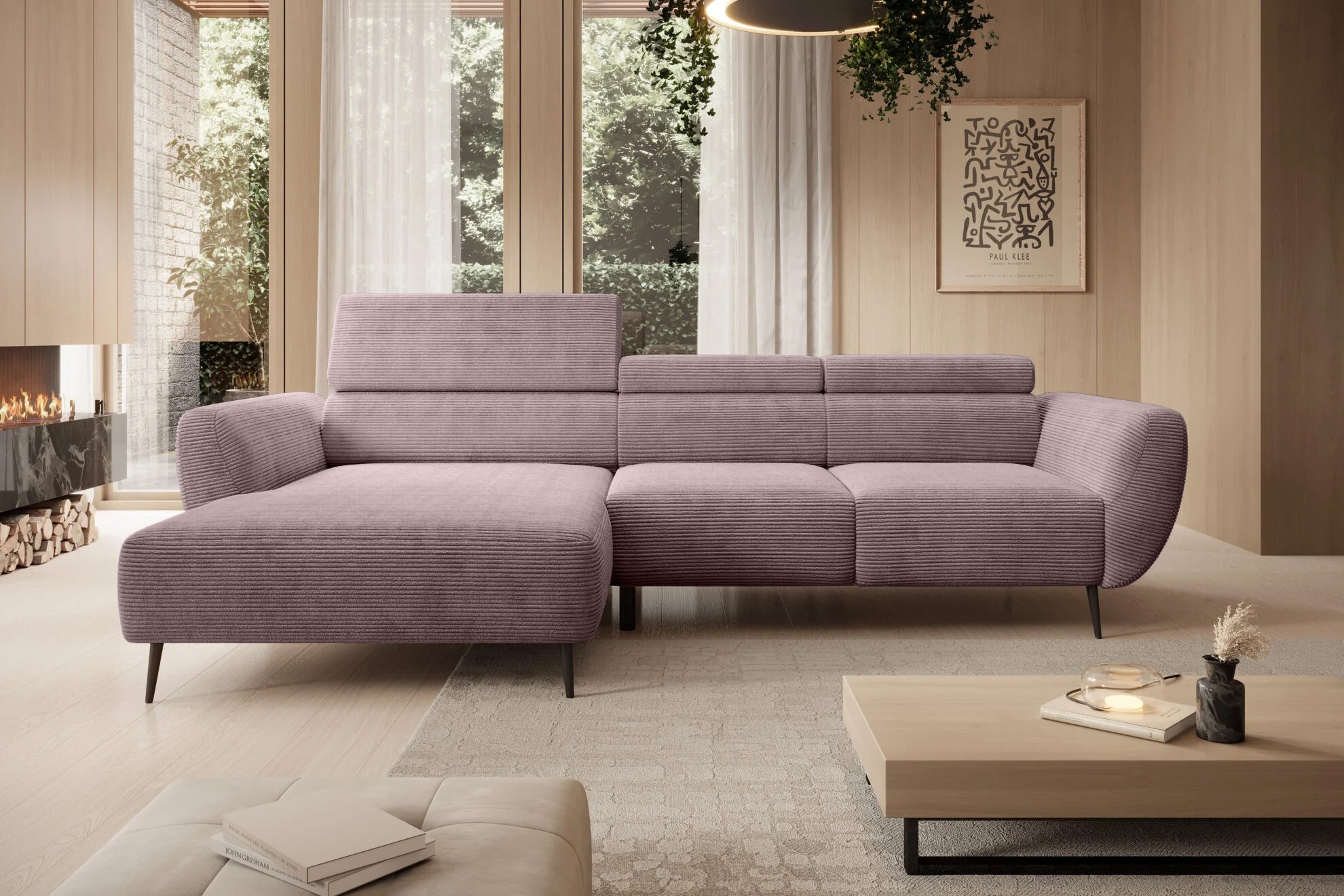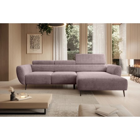 Gładkie siedzisko nadaje narożnikowi nowoczesnego charakteru, a wysokie metalowe nóżki w stylu loftowym dodają mu lekkości i elegancji.