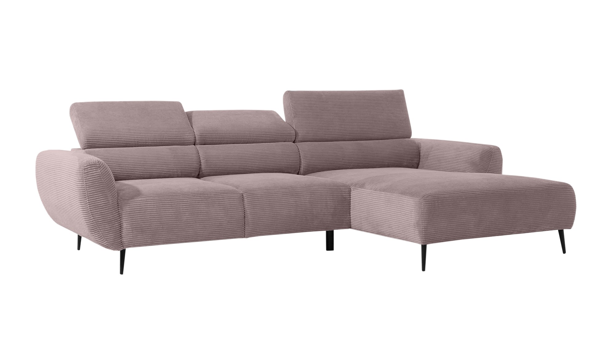Gładkie siedzisko nadaje narożnikowi nowoczesnego charakteru, a wysokie metalowe nóżki w stylu loftowym dodają mu lekkości i elegancji.