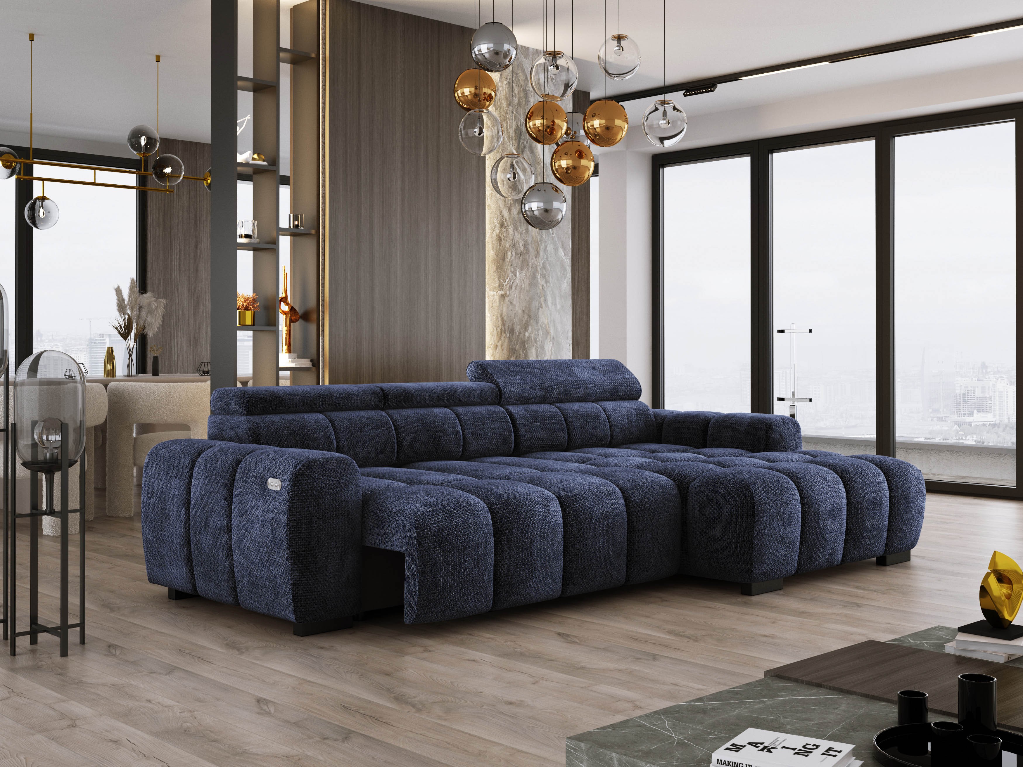 Wyposażony w elektrycznie wysuwane siedzisko (do 27 cm), OMBO oferuje wygodną przestrzeń do wypoczynku oraz praktyczną funkcję spania na co dzień.