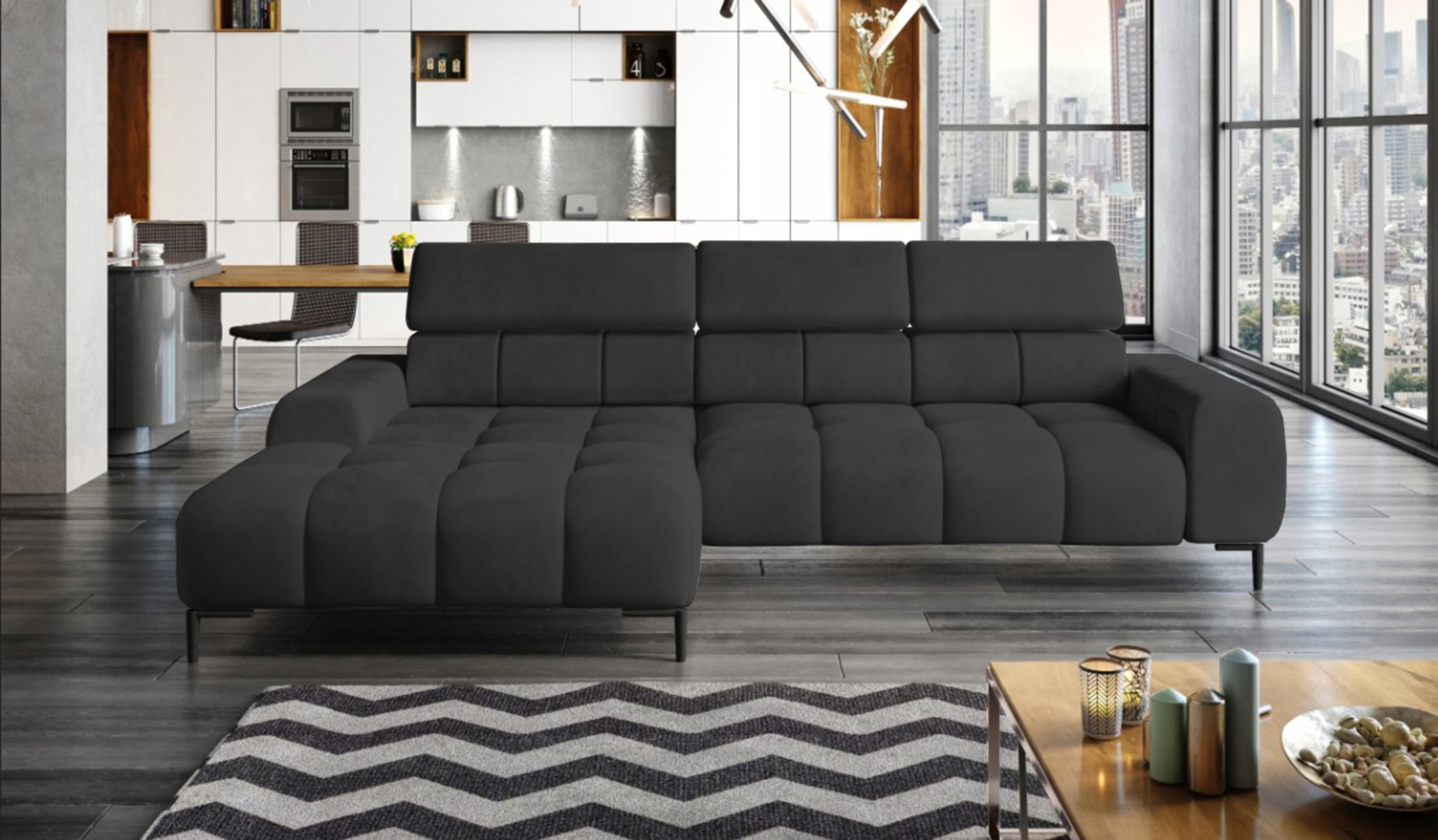 Narożnik PLAZA MINI to połączenie elegancji, nowoczesnych rozwiązań i funkcjonalności, które spełnią oczekiwania nawet najbardziej wymagających użytkowników.
