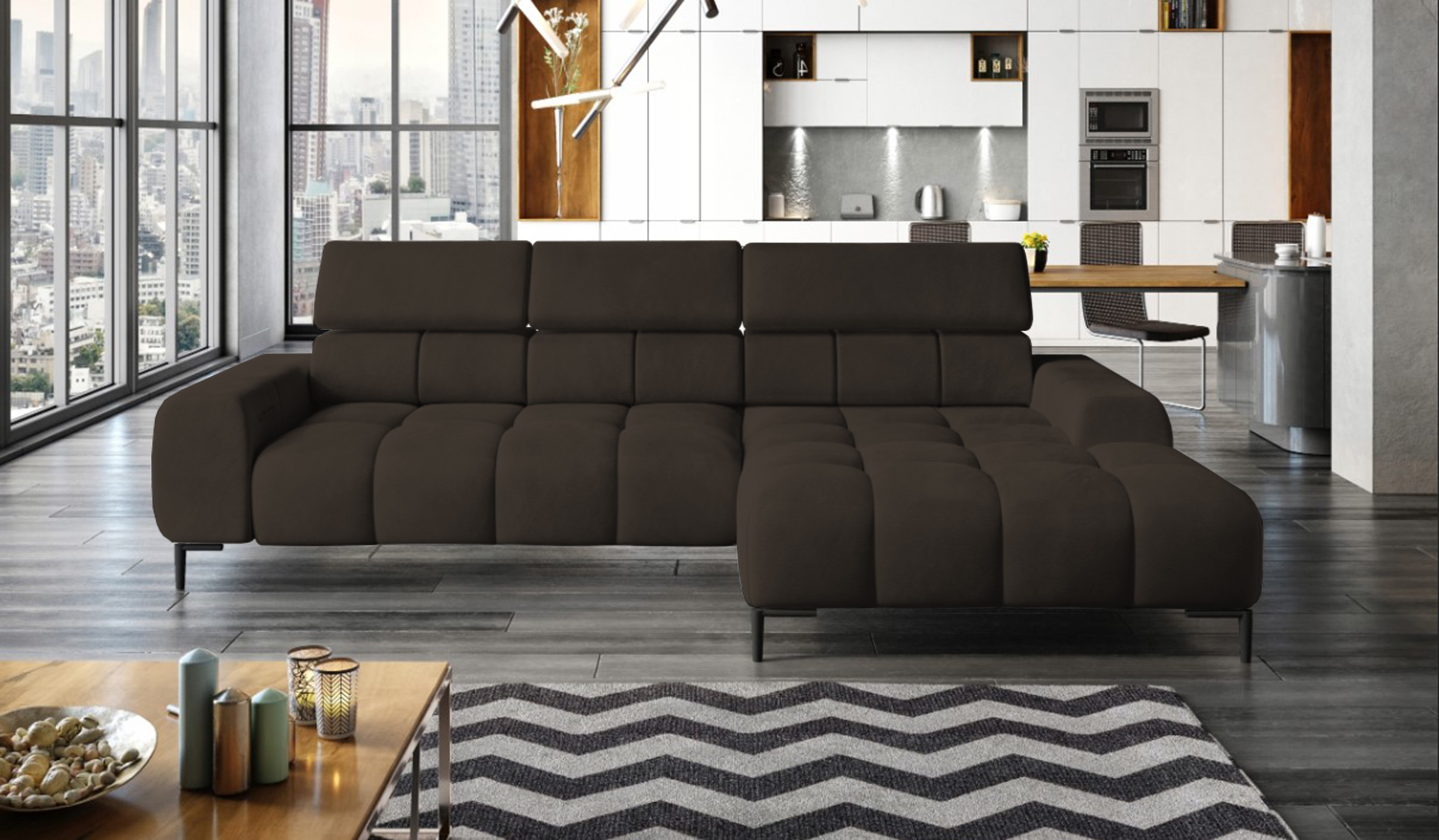 Narożnik PLAZA MINI to połączenie elegancji, nowoczesnych rozwiązań i funkcjonalności, które spełnią oczekiwania nawet najbardziej wymagających użytkowników.