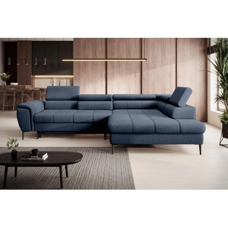 Dodatkowo narożnik wyposażony jest w przesuwne oparcie oraz regulowane zagłówki, które można zablokować w wybranej pozycji, zapewniając jeszcze większy komfort.