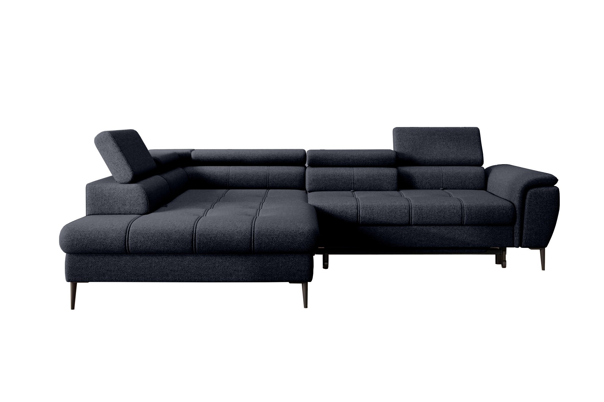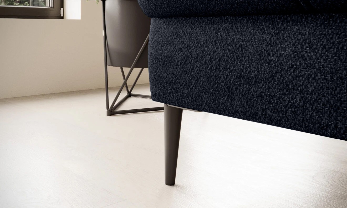 Stylowe pikowane siedzisko i wysokie metalowe nóżki (dostępne w kolorze czarnym lub złotym) nadają narożnikowi lekko loftowy, a jednocześnie nowoczesny charakter.