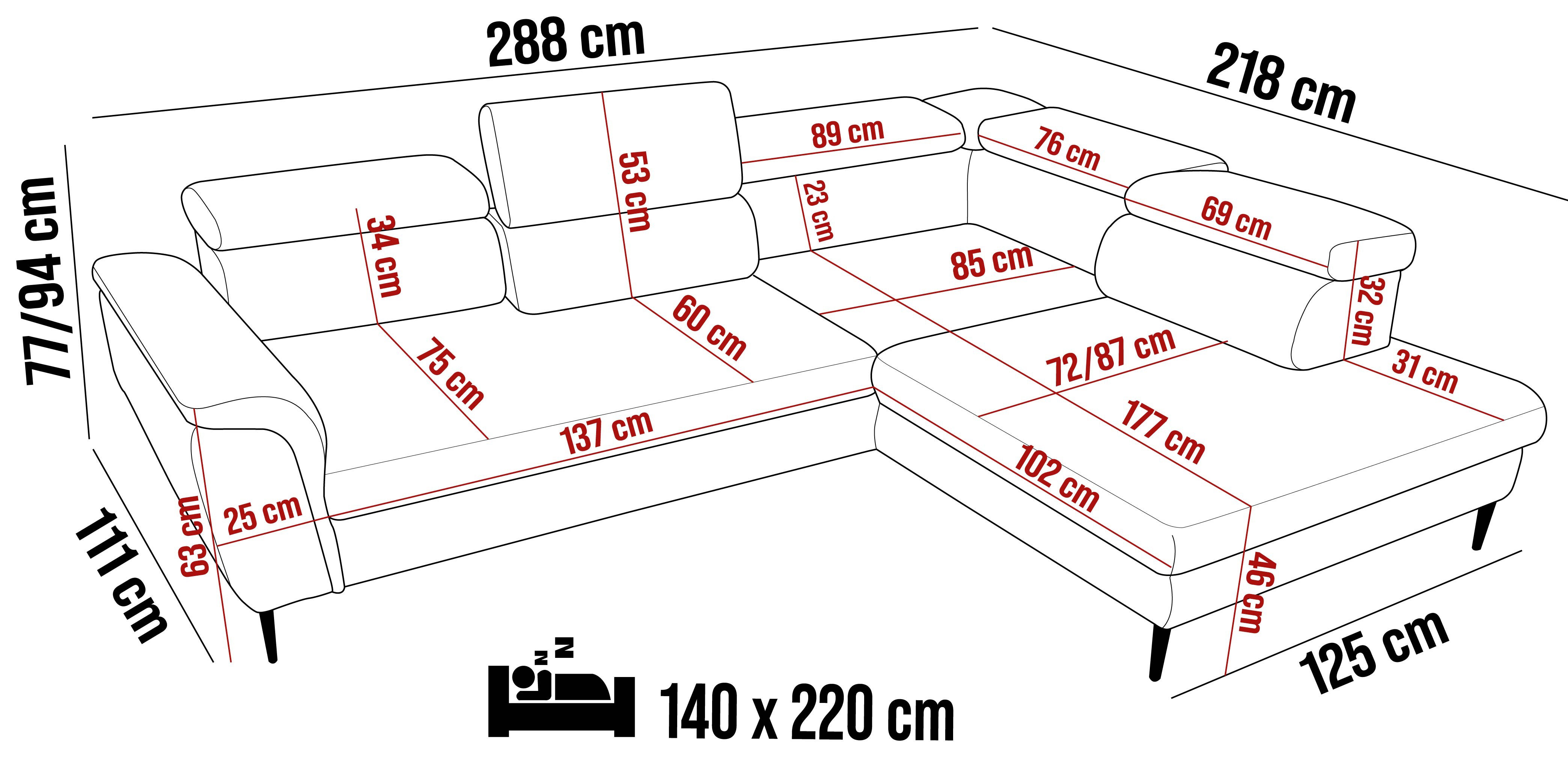 288x218x77/94 cm