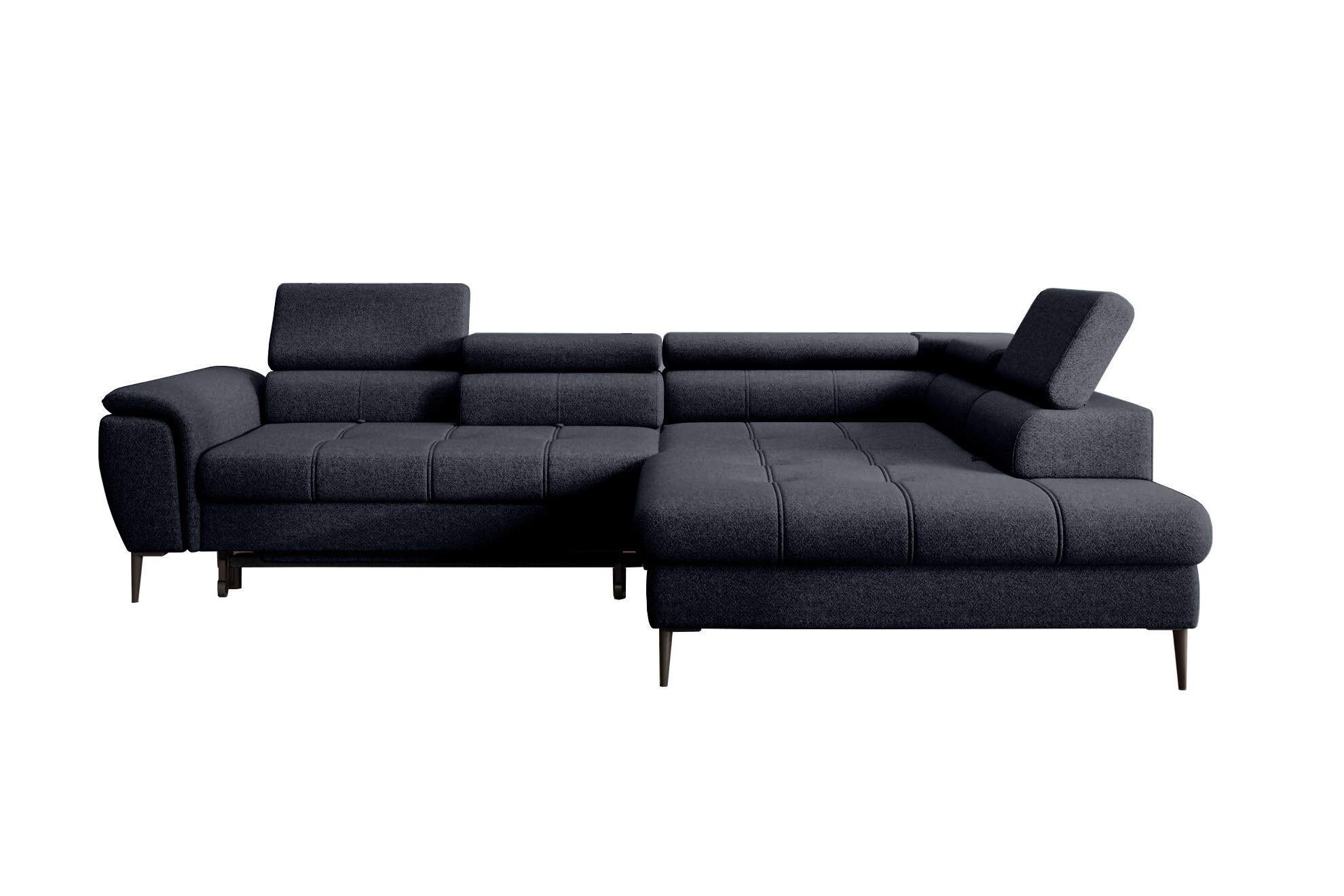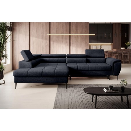 metalowe nóżki (dostępne w kolorze czarnym lub złotym) nadają narożnikowi lekko loftowy, a jednocześnie nowoczesny charakter.