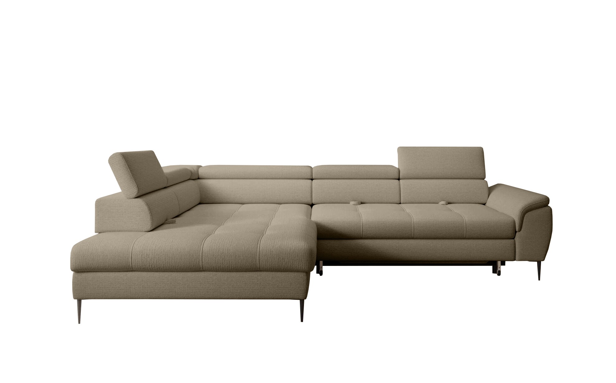 Stylowe pikowane siedzisko i wysokie metalowe nóżki nadają narożnikowi lekko loftowy, a jednocześnie nowoczesny charakter.